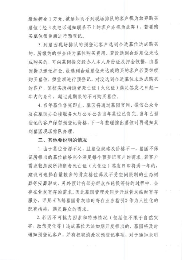 飞鹅墓园关于进行部分未售墓位认购需求预登记及开放骨灰临时寄存的通知