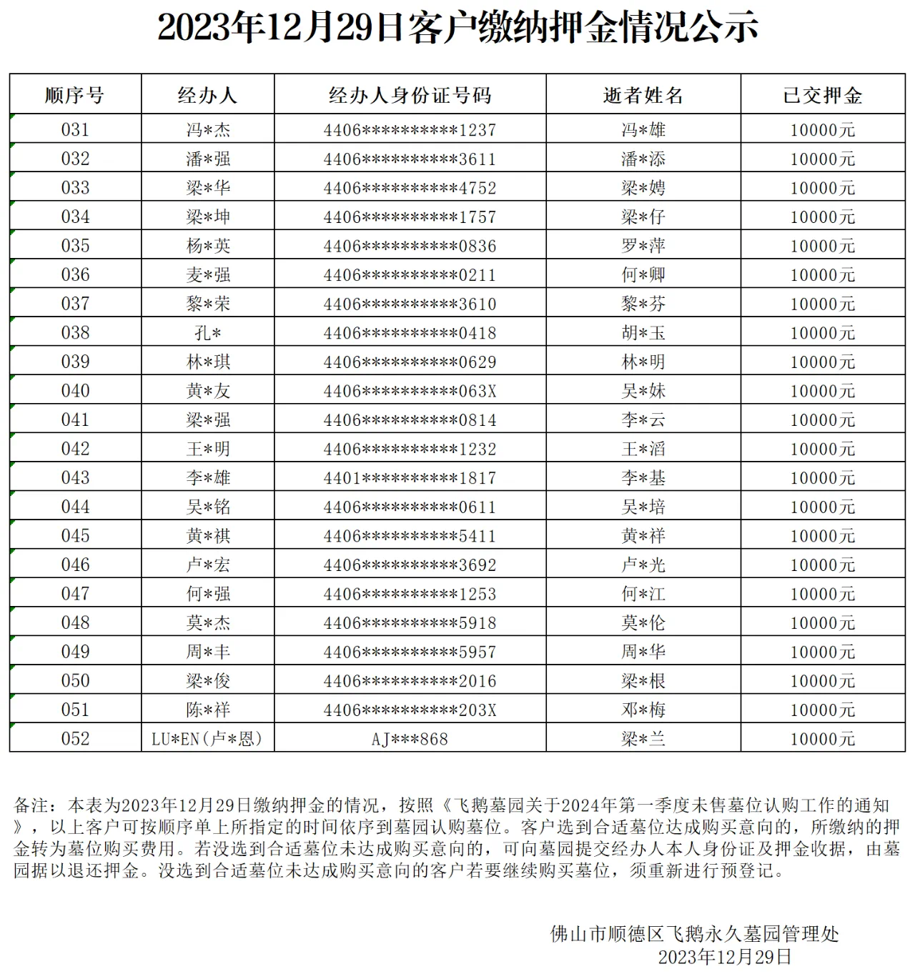 上一篇:2023年12月30日客户缴纳押金情况公示