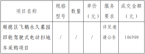 顺德区飞鹅永久墓园四轮驾驶式电动扫地车采购项目供应商资格递补事项的公告