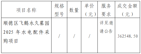 顺德区飞鹅永久墓园2025年水电配件采购项目竞价结果公告