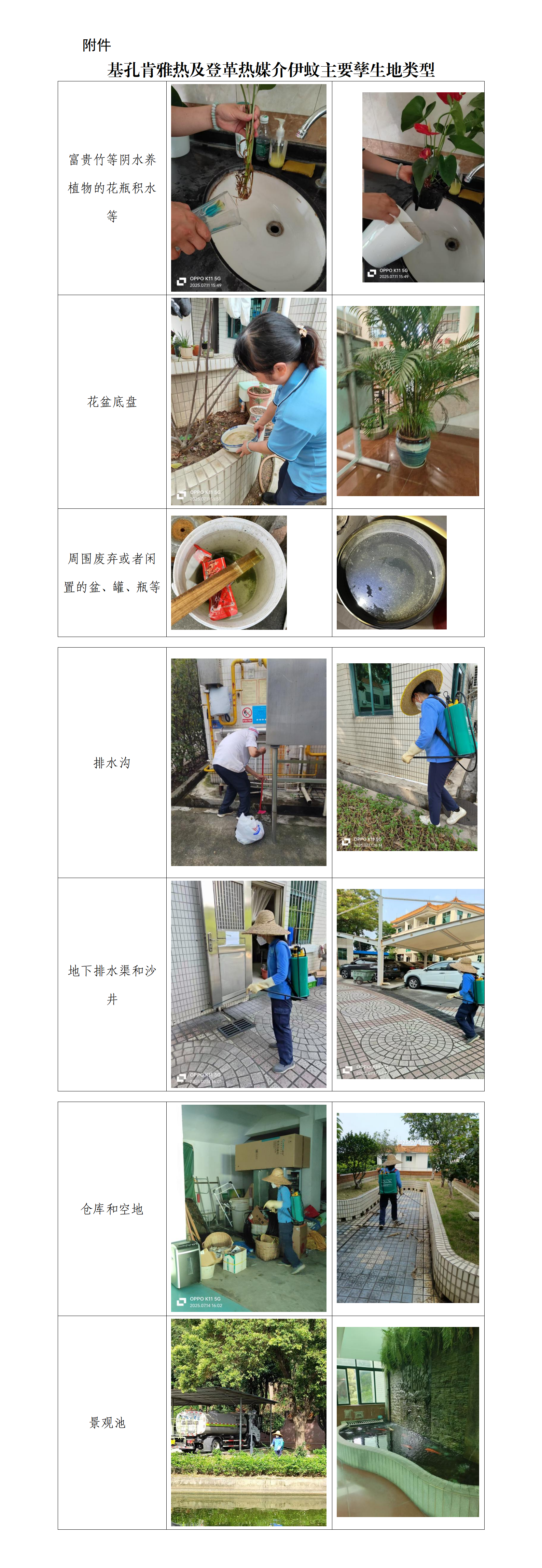 (三)办公楼、饭堂、员工宿舍等伊蚊孳生的重点场所,需要定时检查积水并采取药物喷洒的方法防制蚊虫。