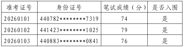 参加笔试的考生成绩及入围资格复审的考生名单如下: