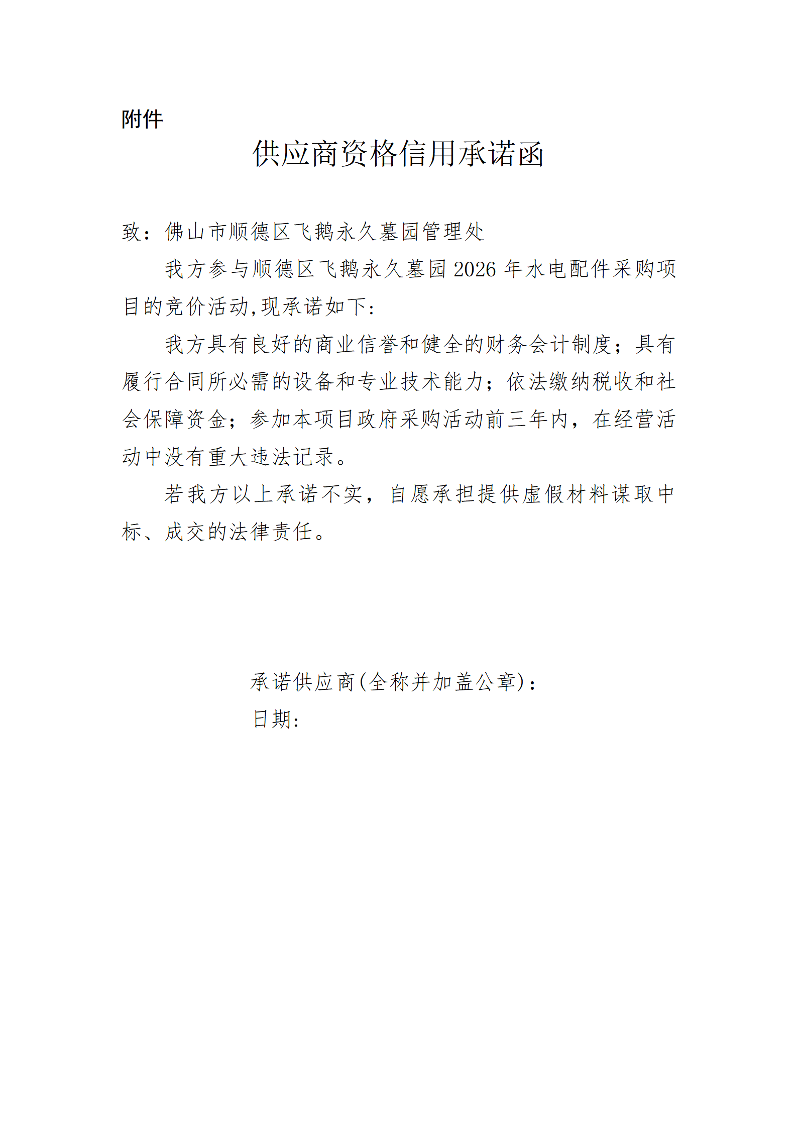 (3)供应商资格信用承诺函(格式详见附件);