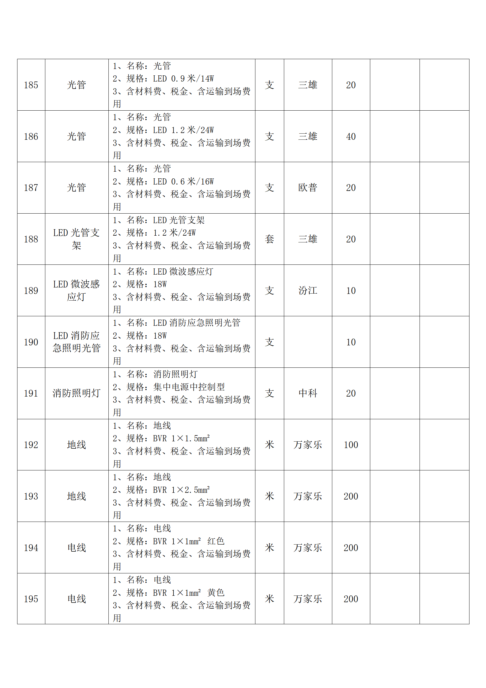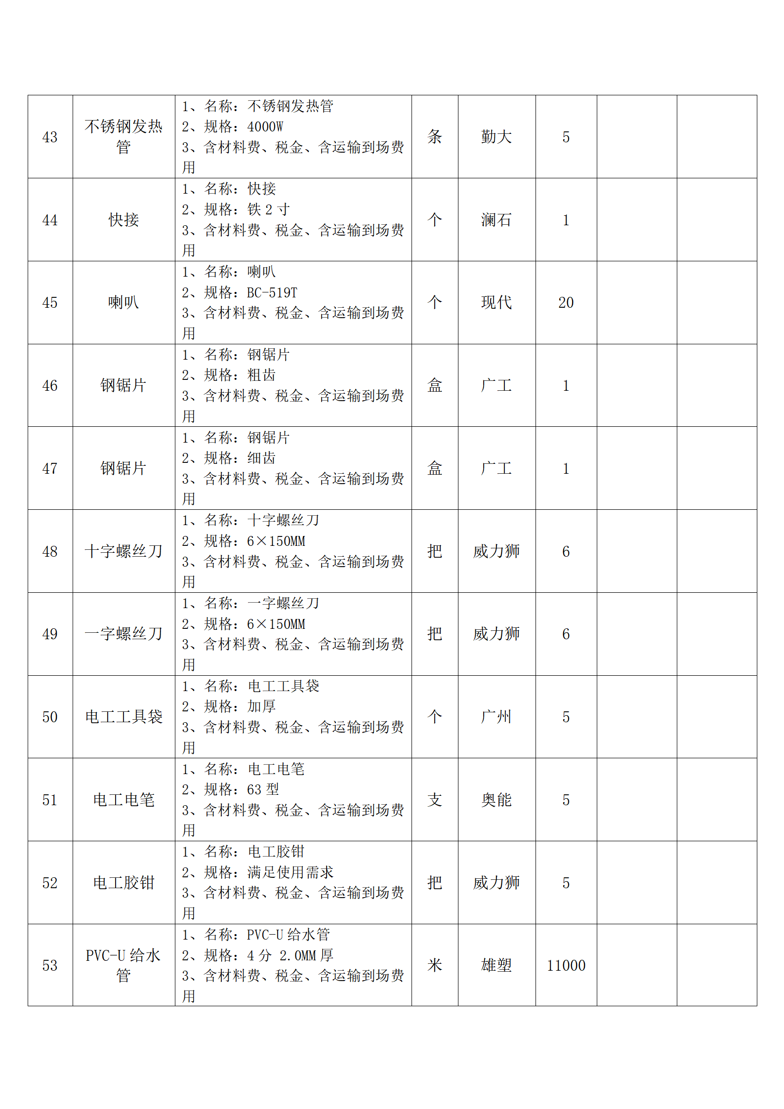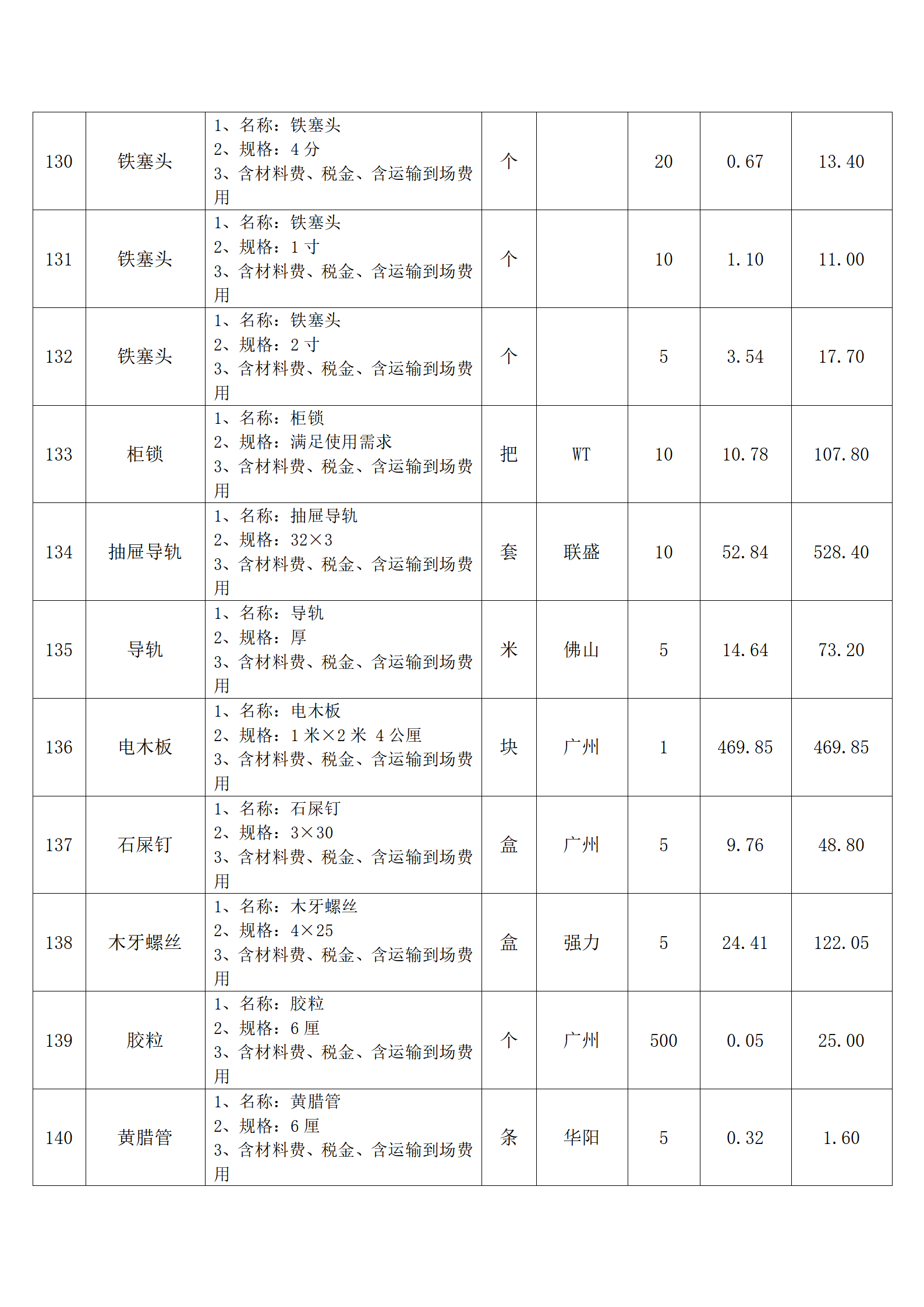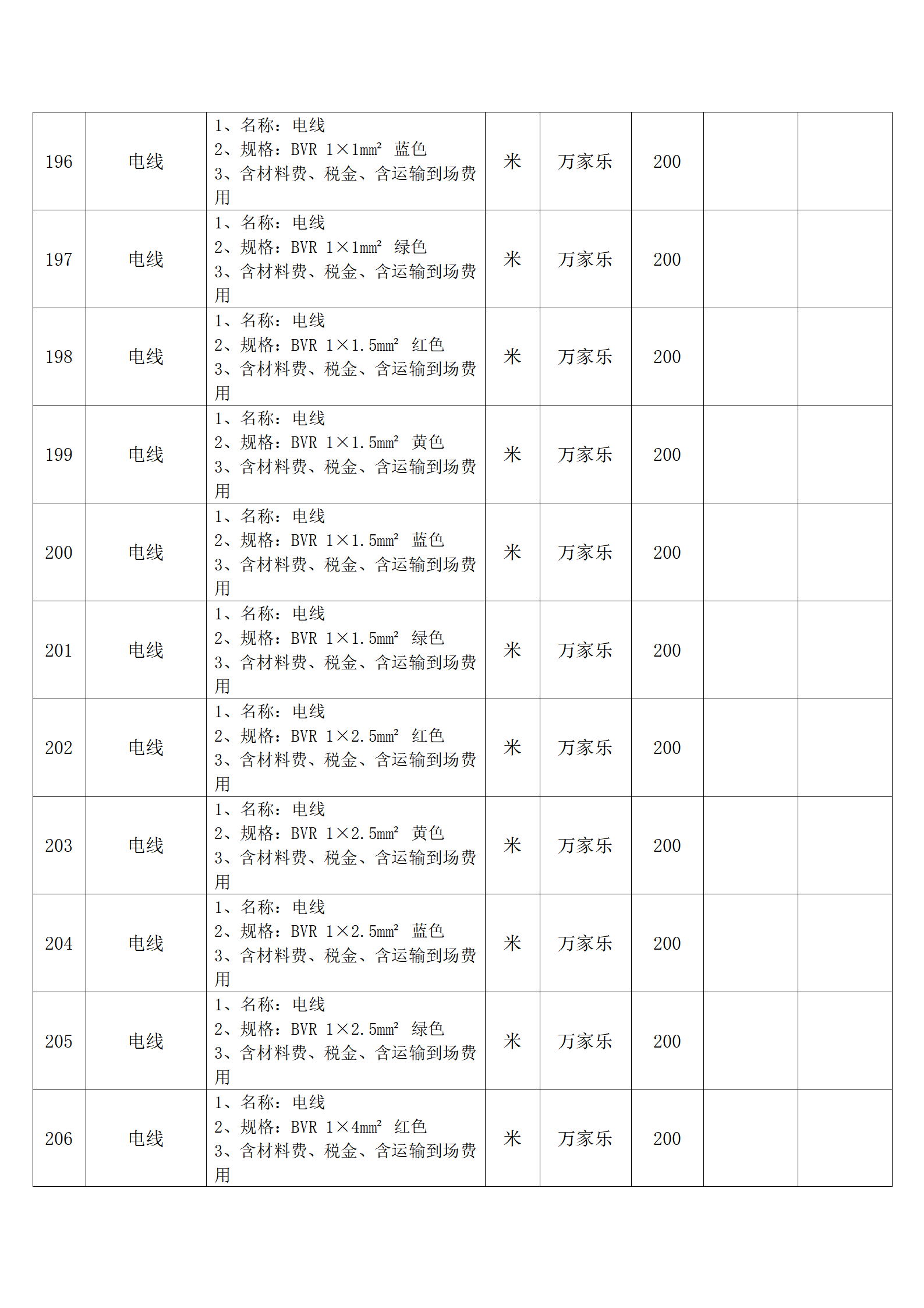 全费用清单与报价表中每一项都已指定品牌和采购量,报价人均不得更改。