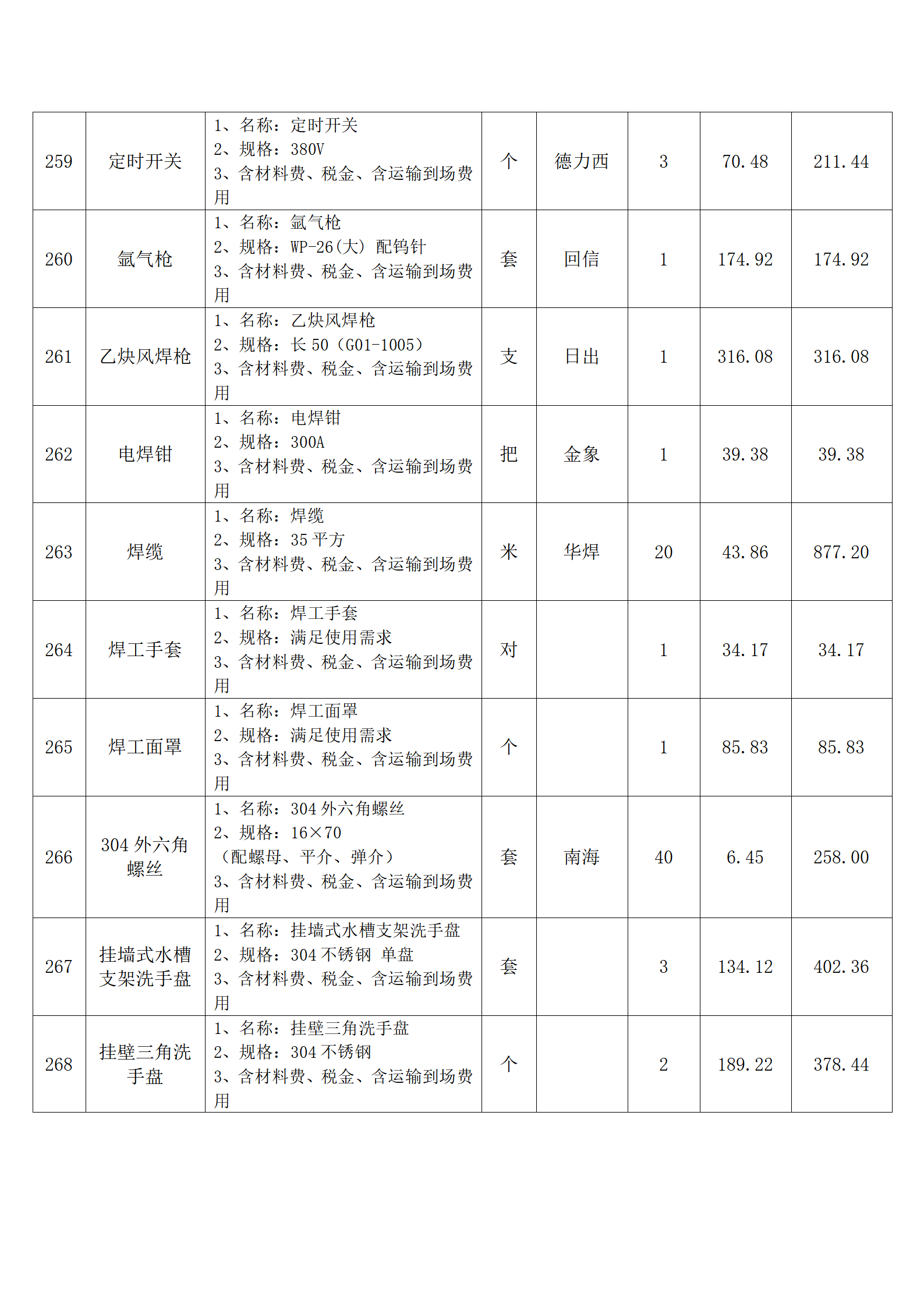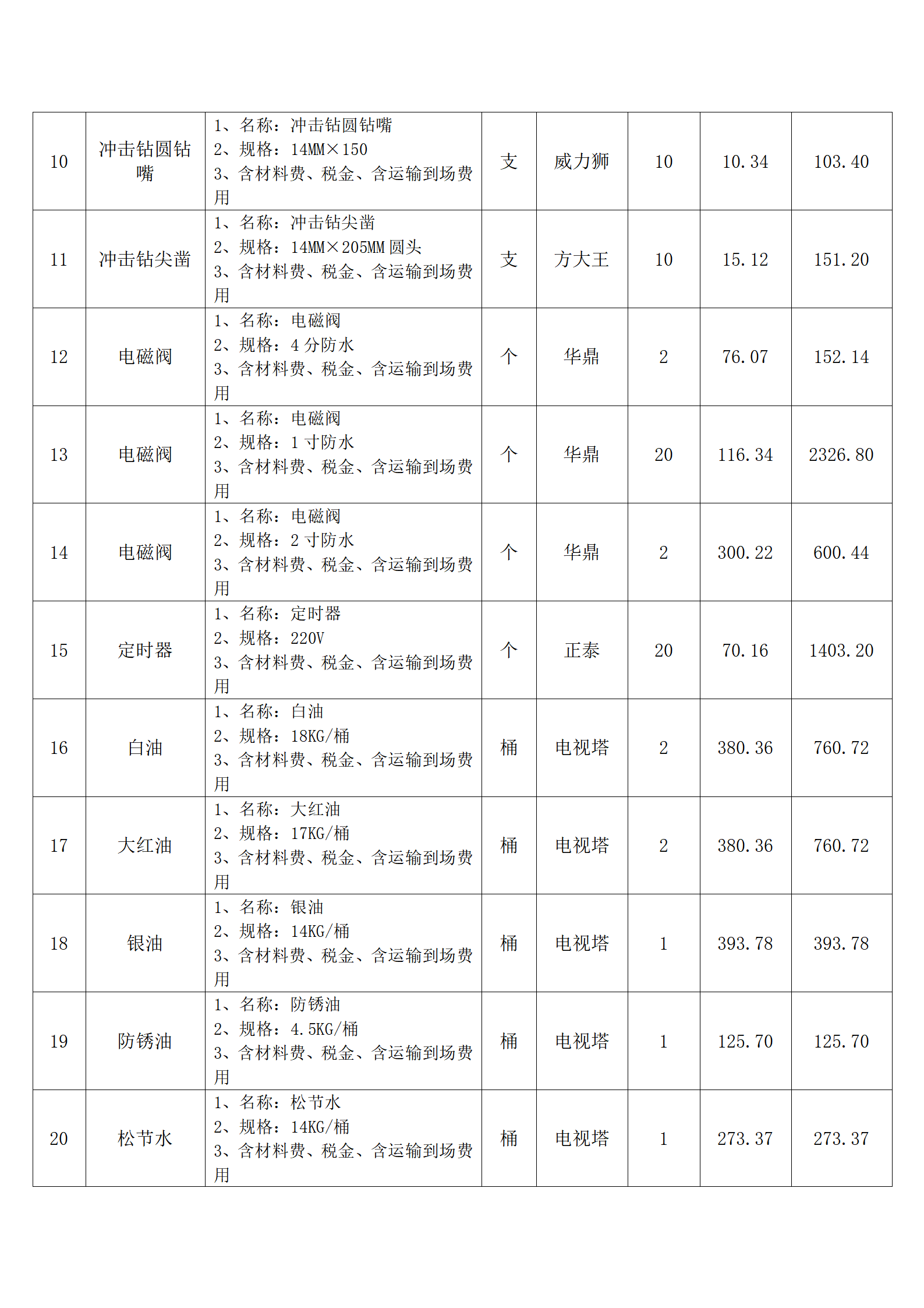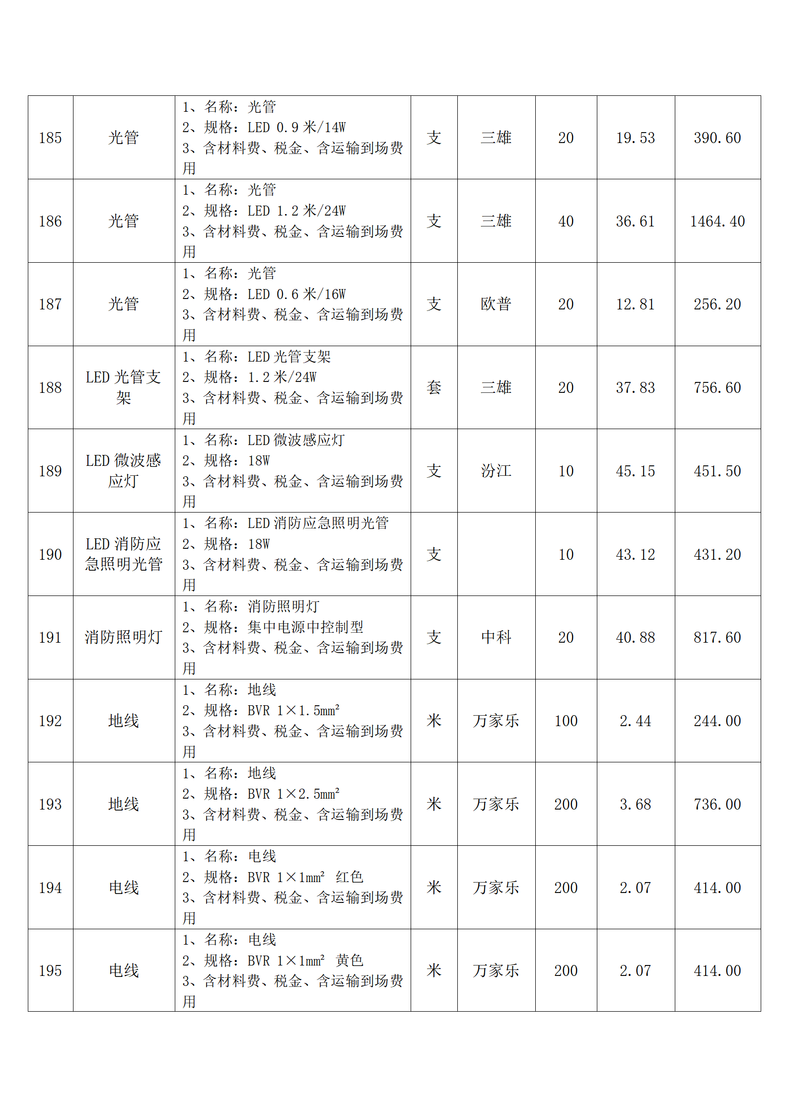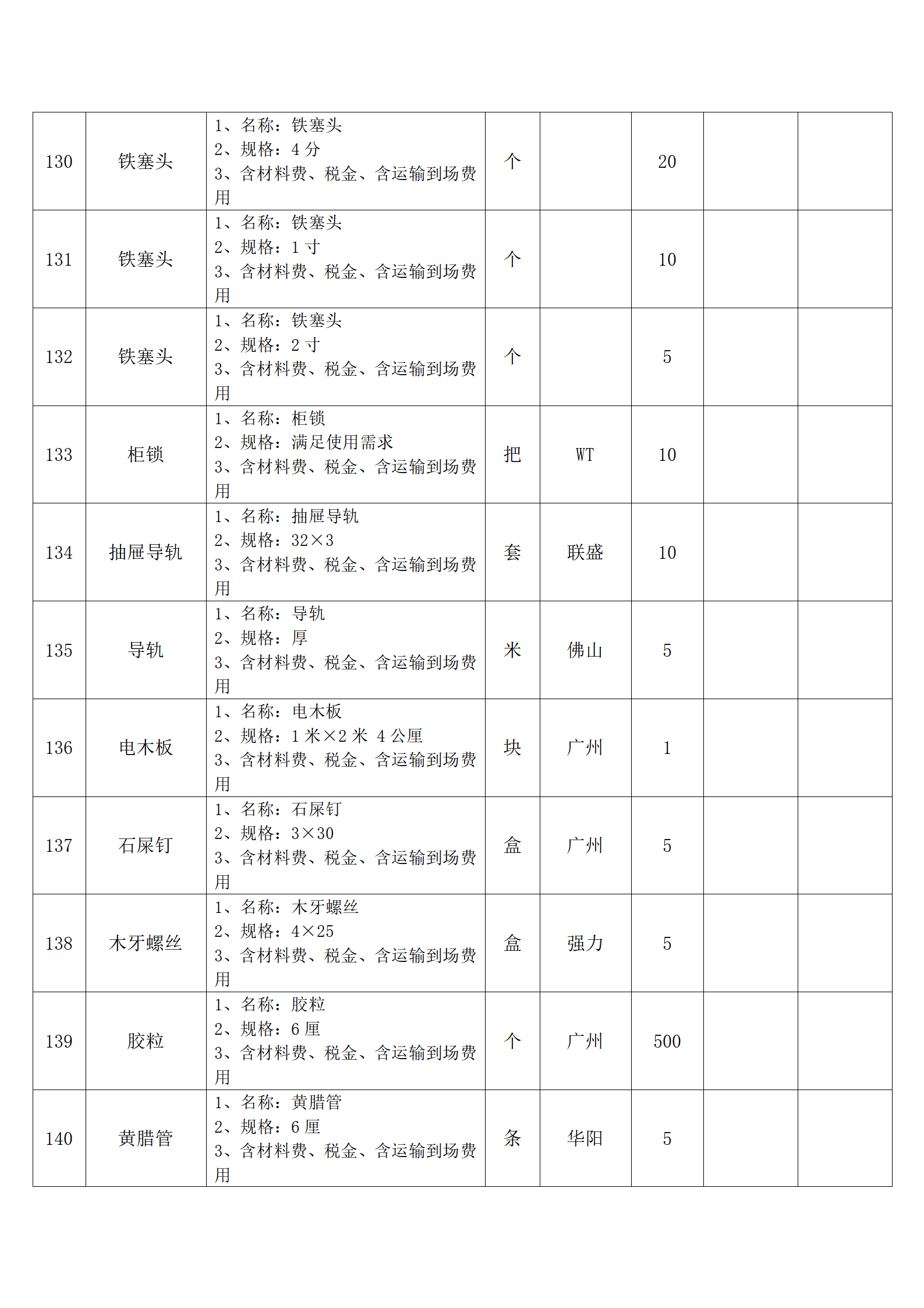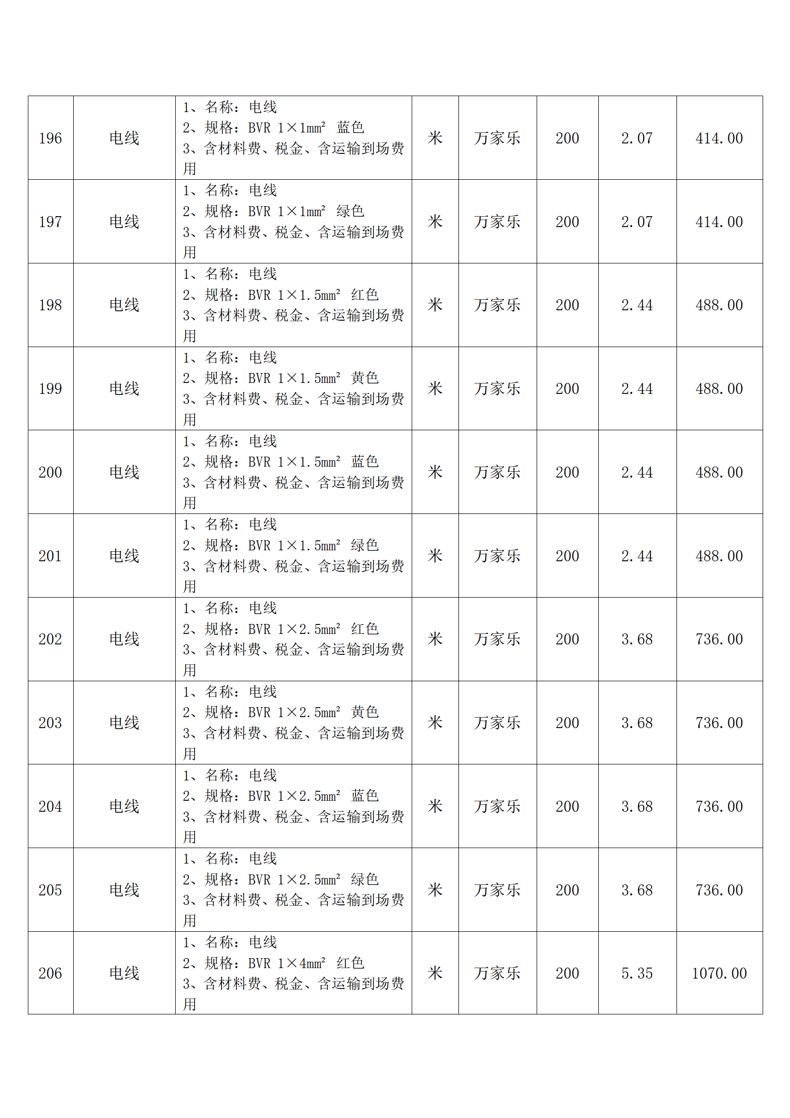 全费用清单与报价表中每一项都已指定品牌和采购量,报价人均不得更改。