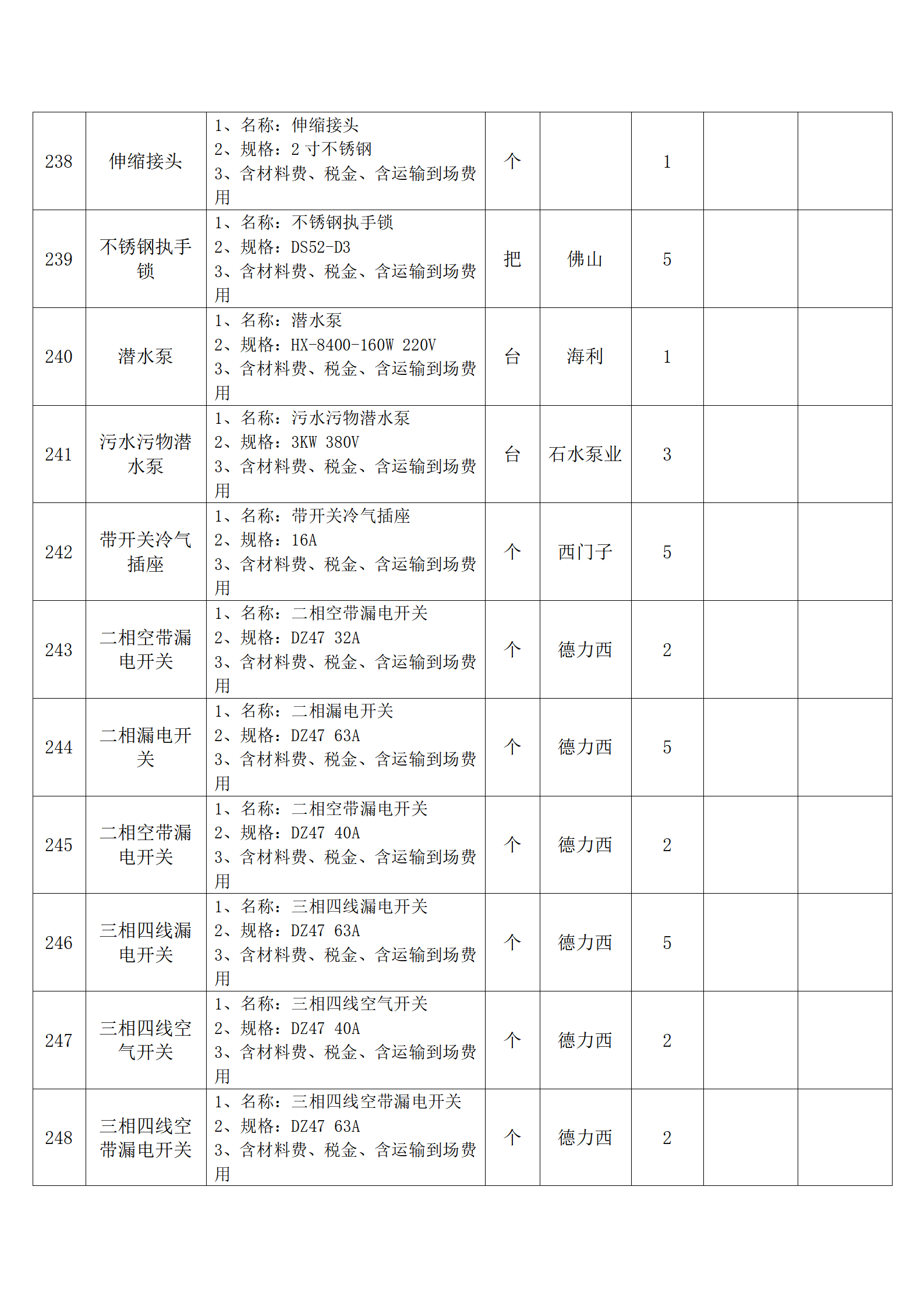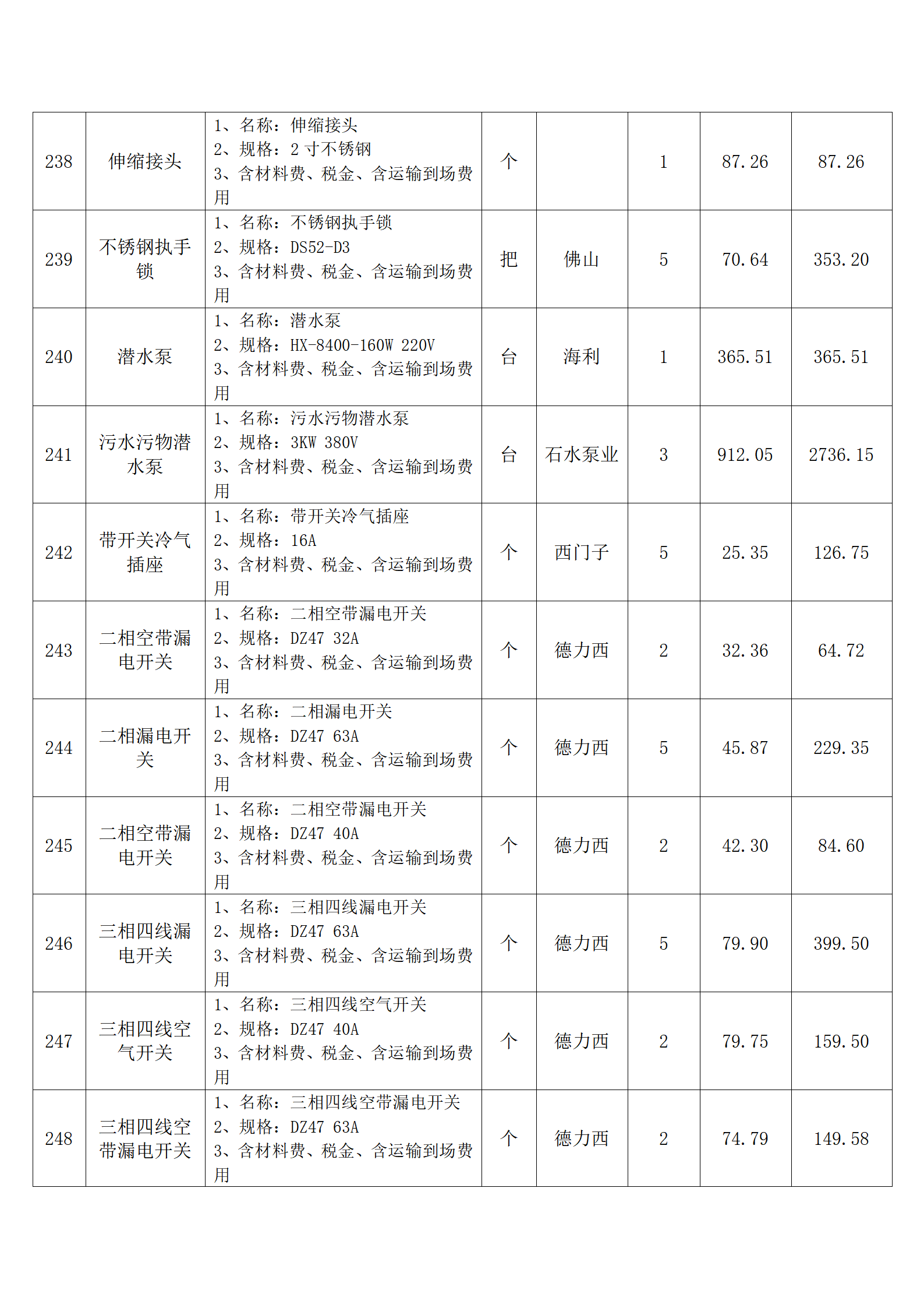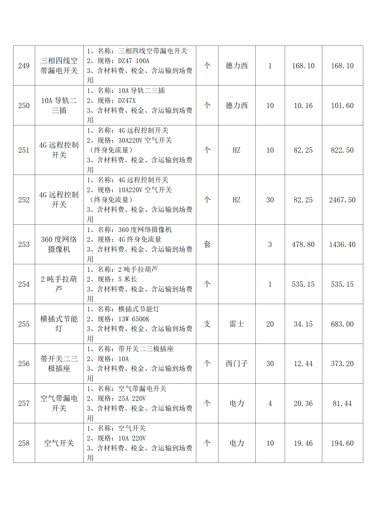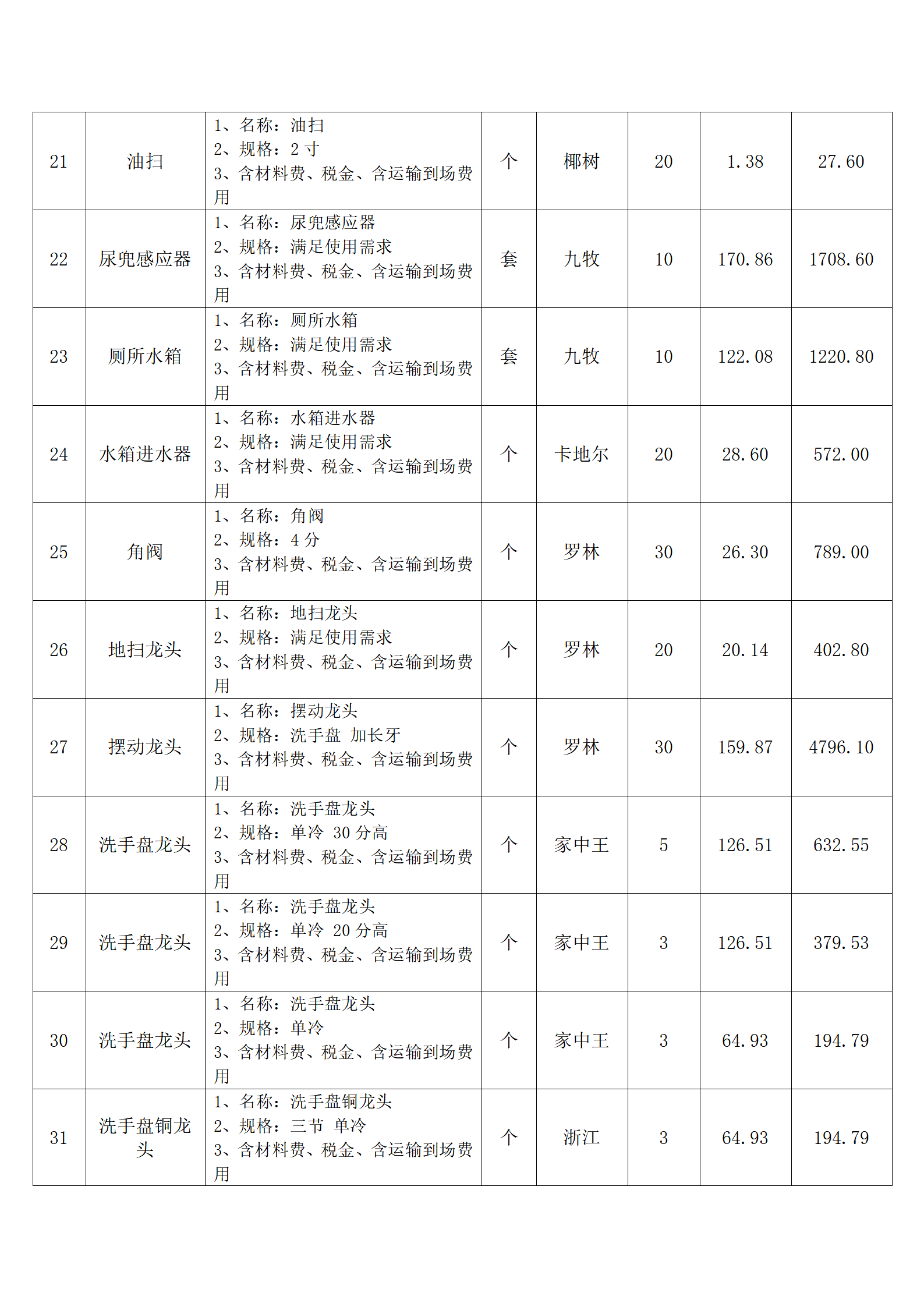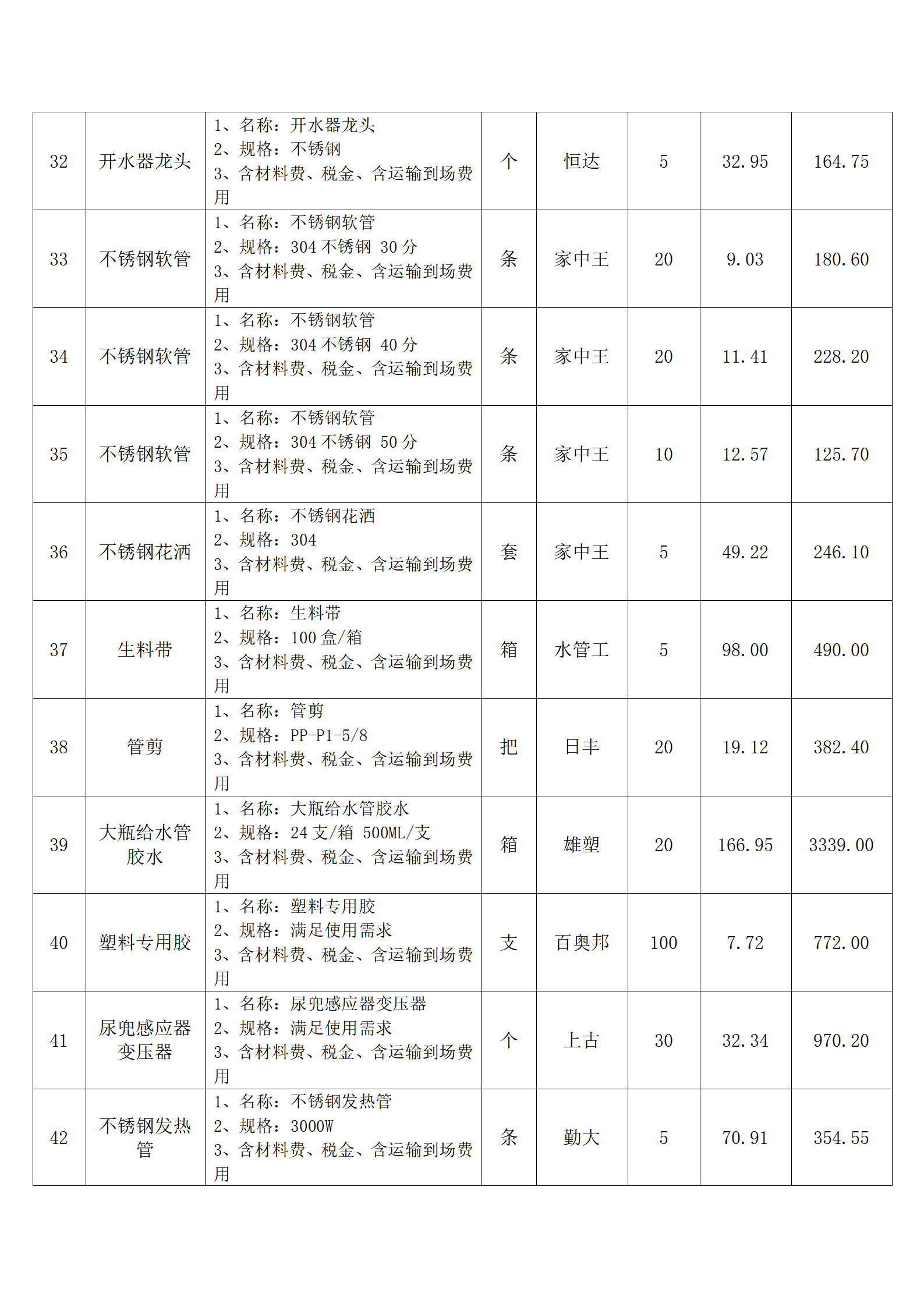 全费用清单与报价表中每一项都已指定品牌和采购量,报价人均不得更改。
