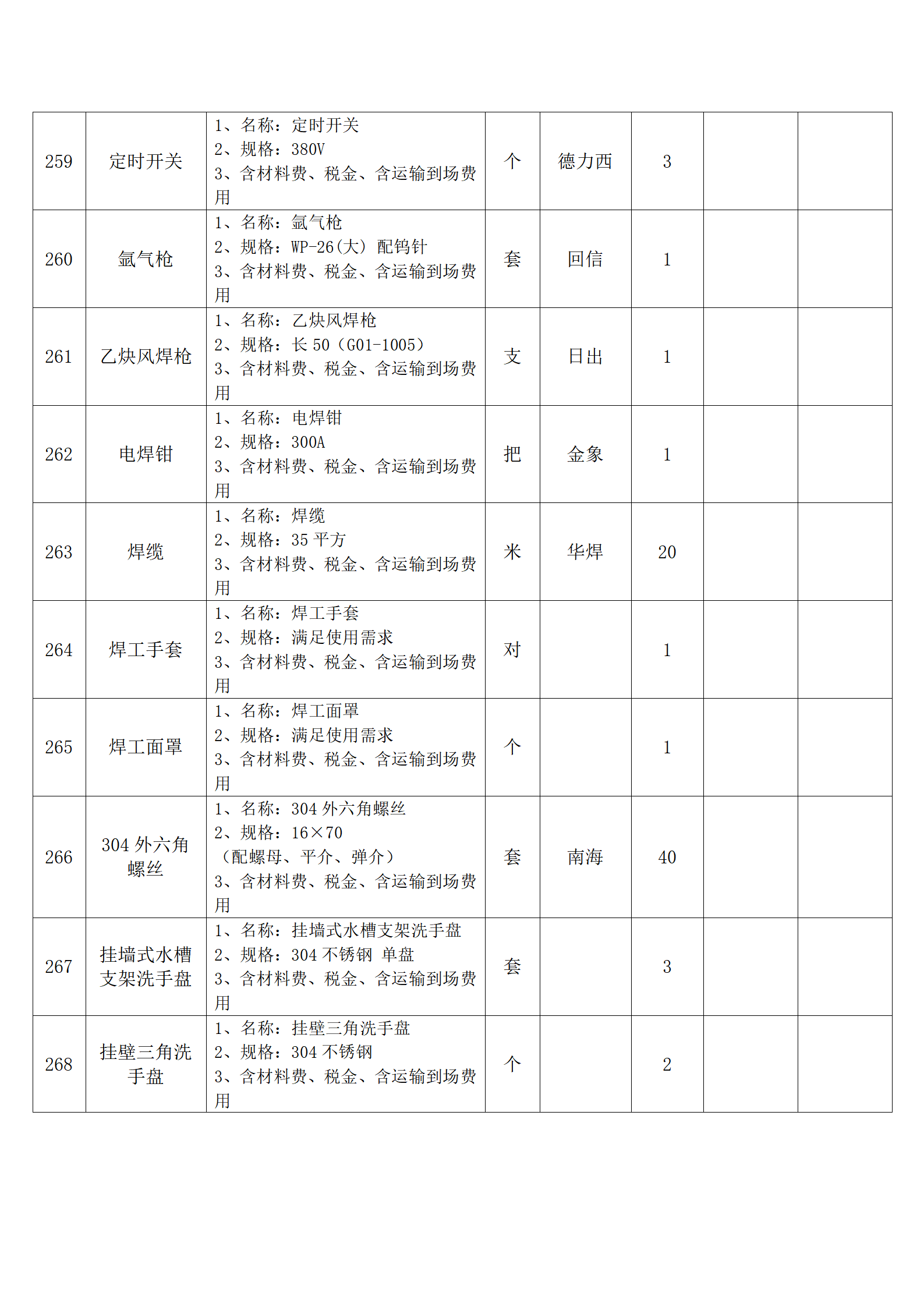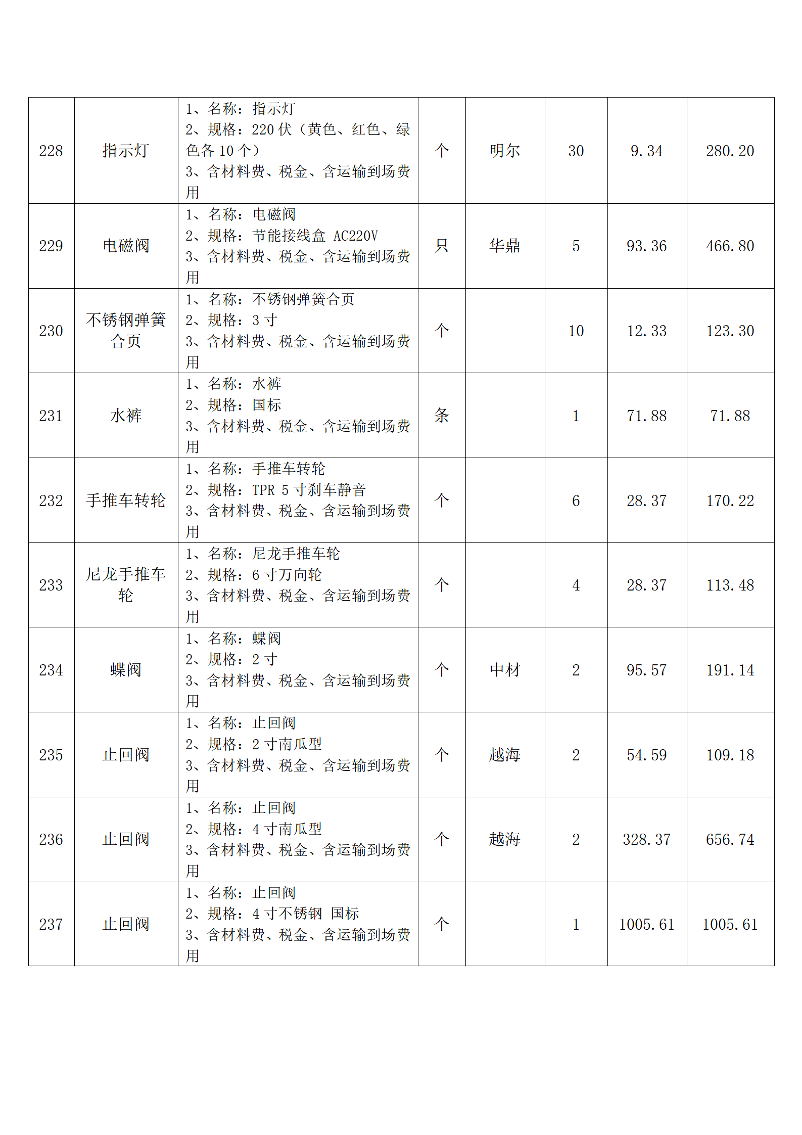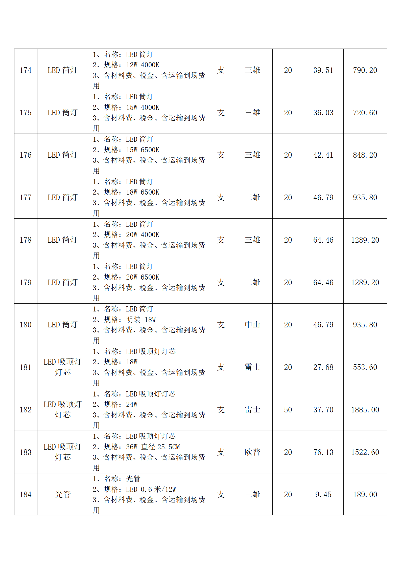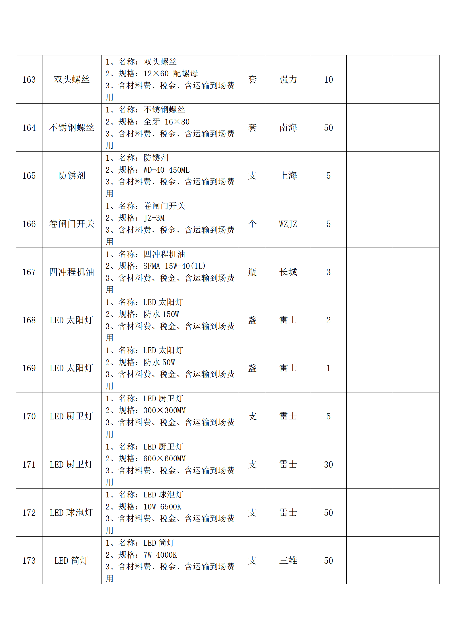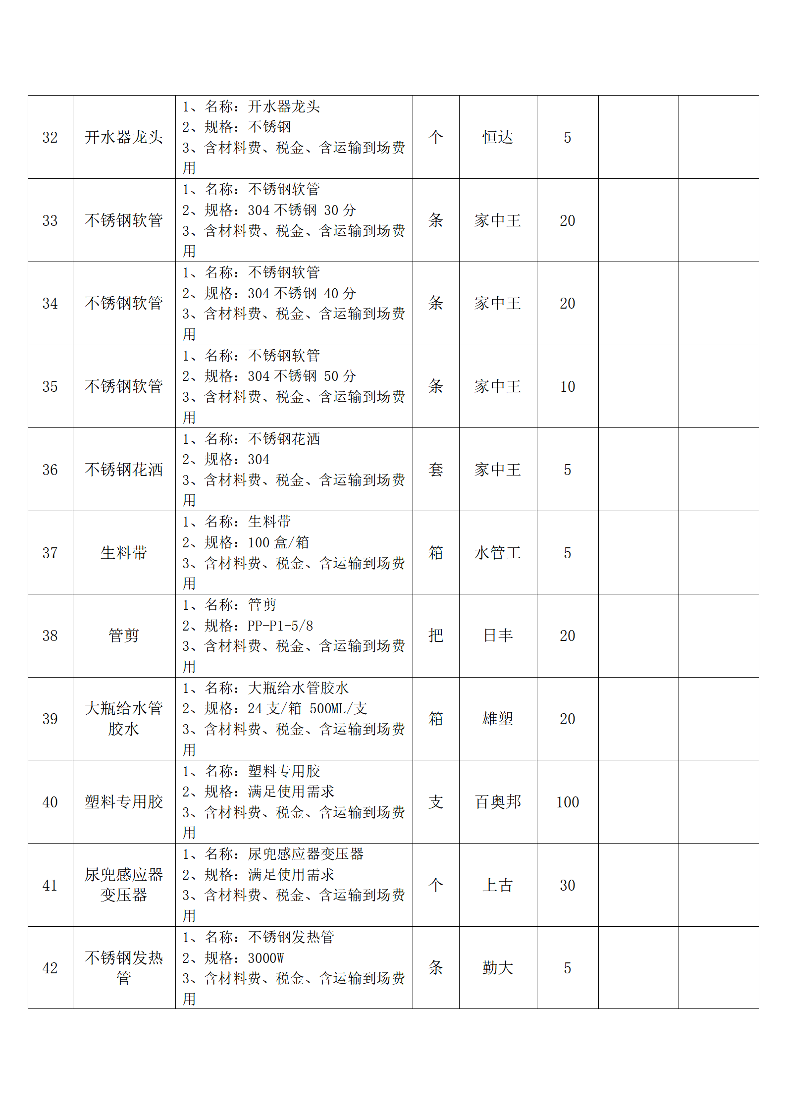 全费用清单与报价表中每一项都已指定品牌和采购量,报价人均不得更改。