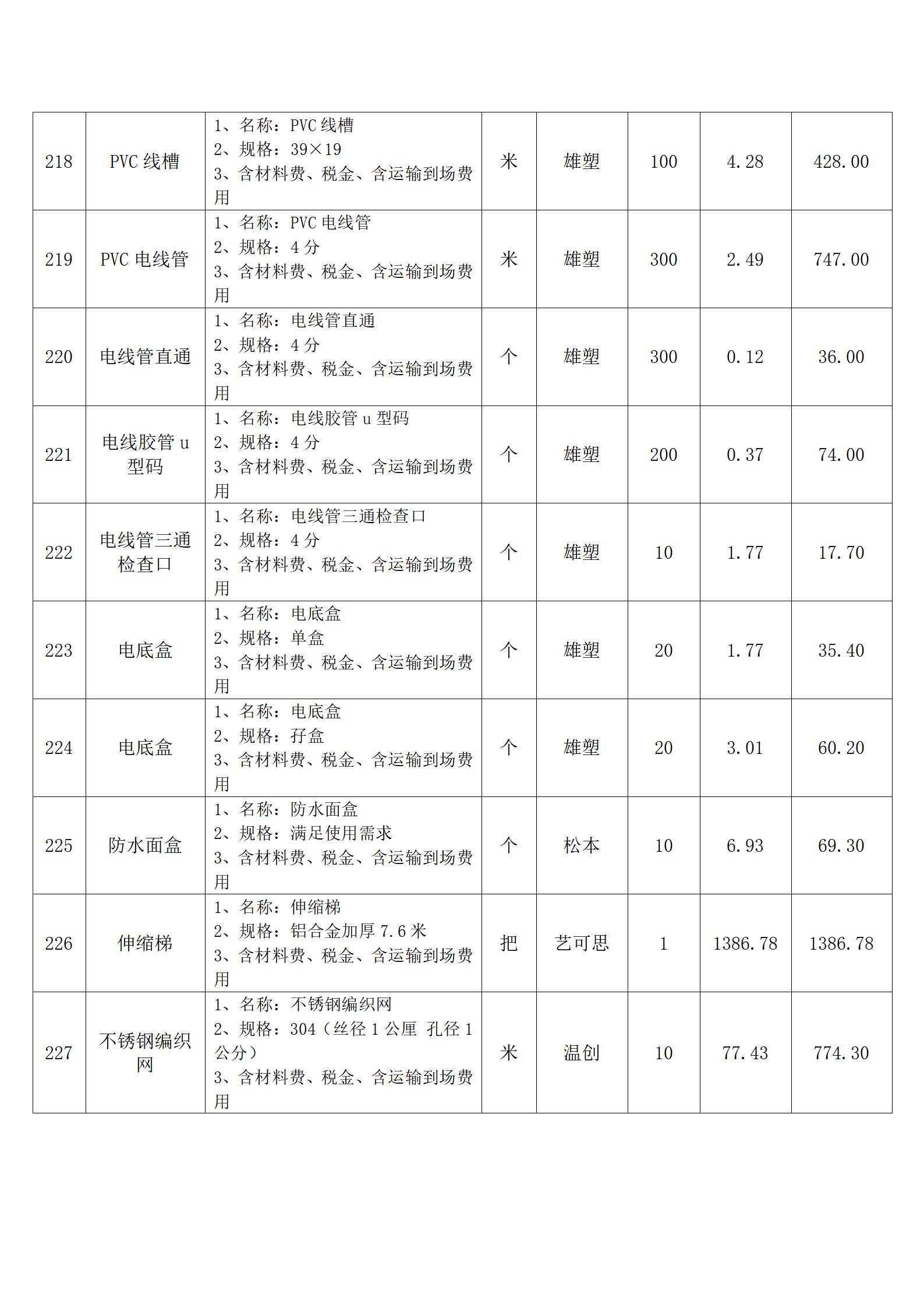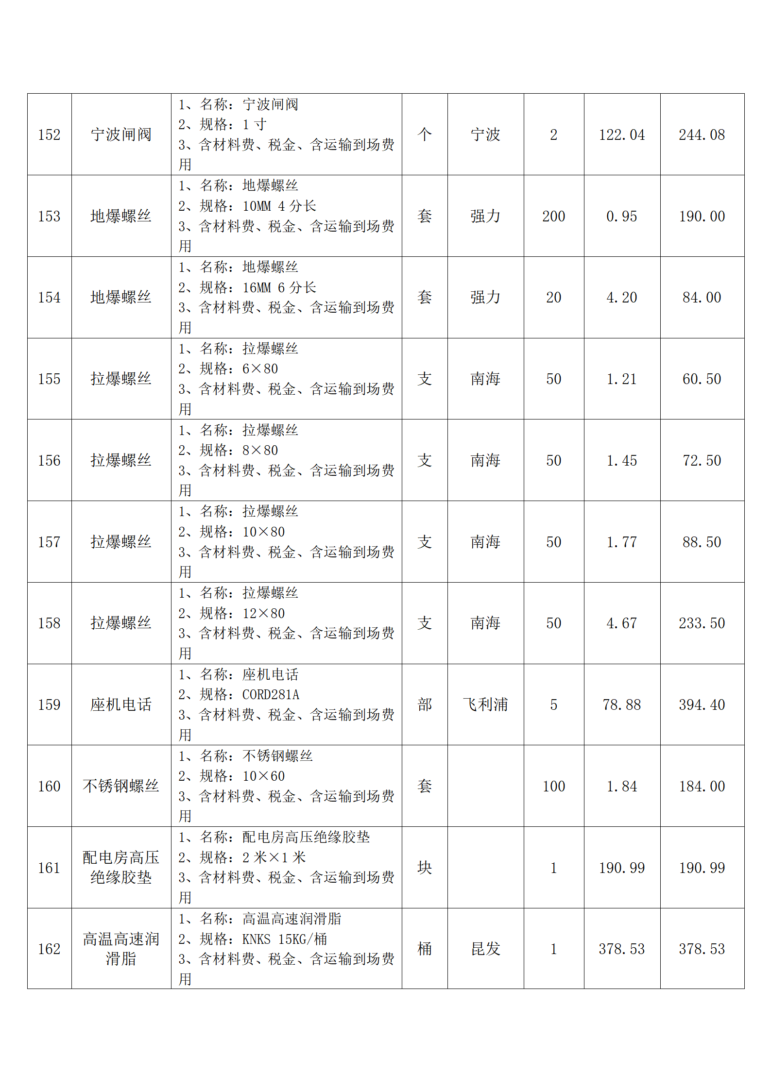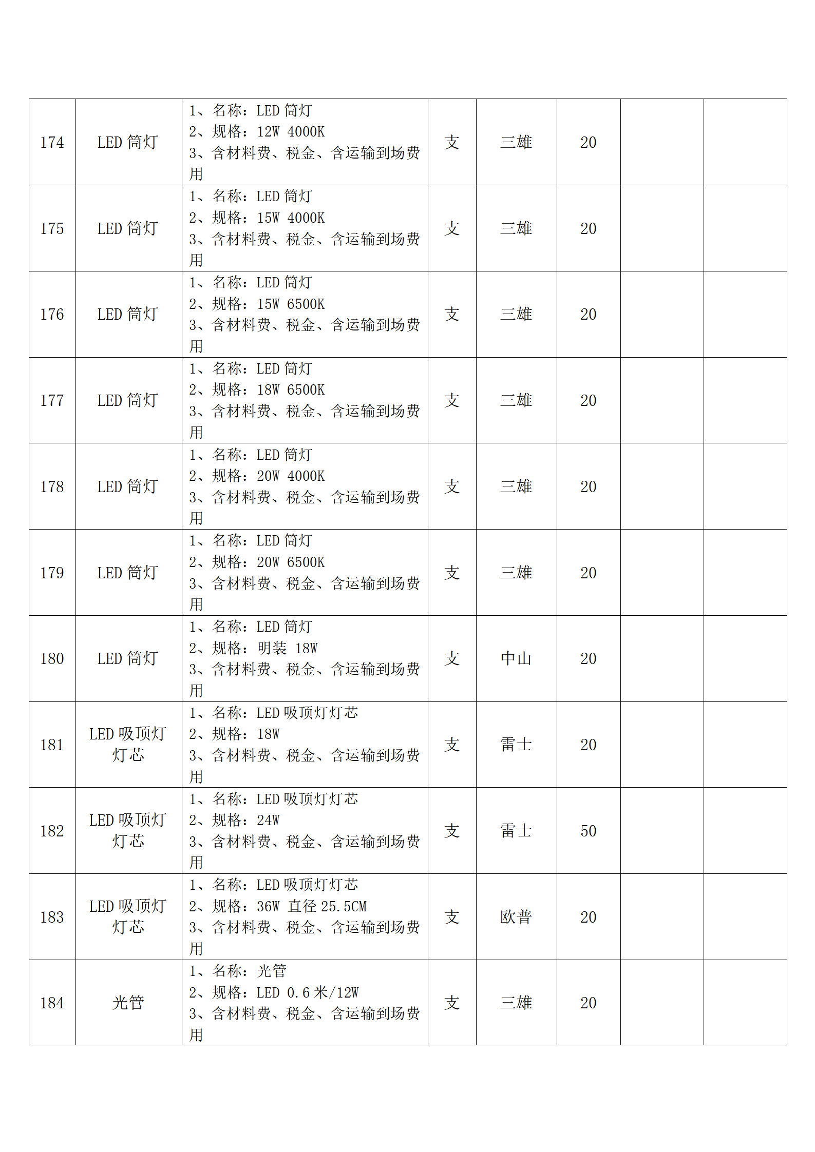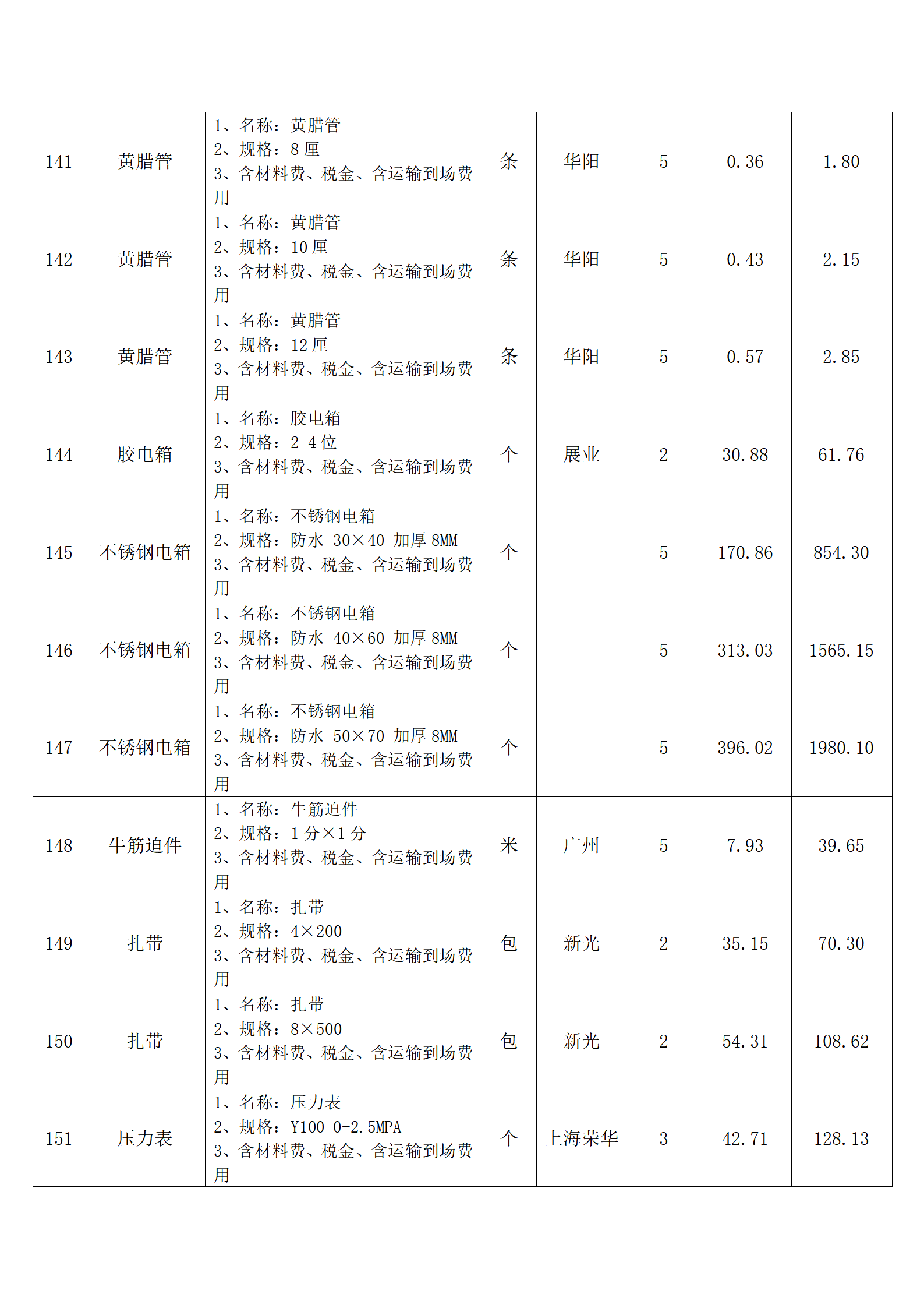全费用清单与报价表中每一项都已指定品牌和采购量,报价人均不得更改。
