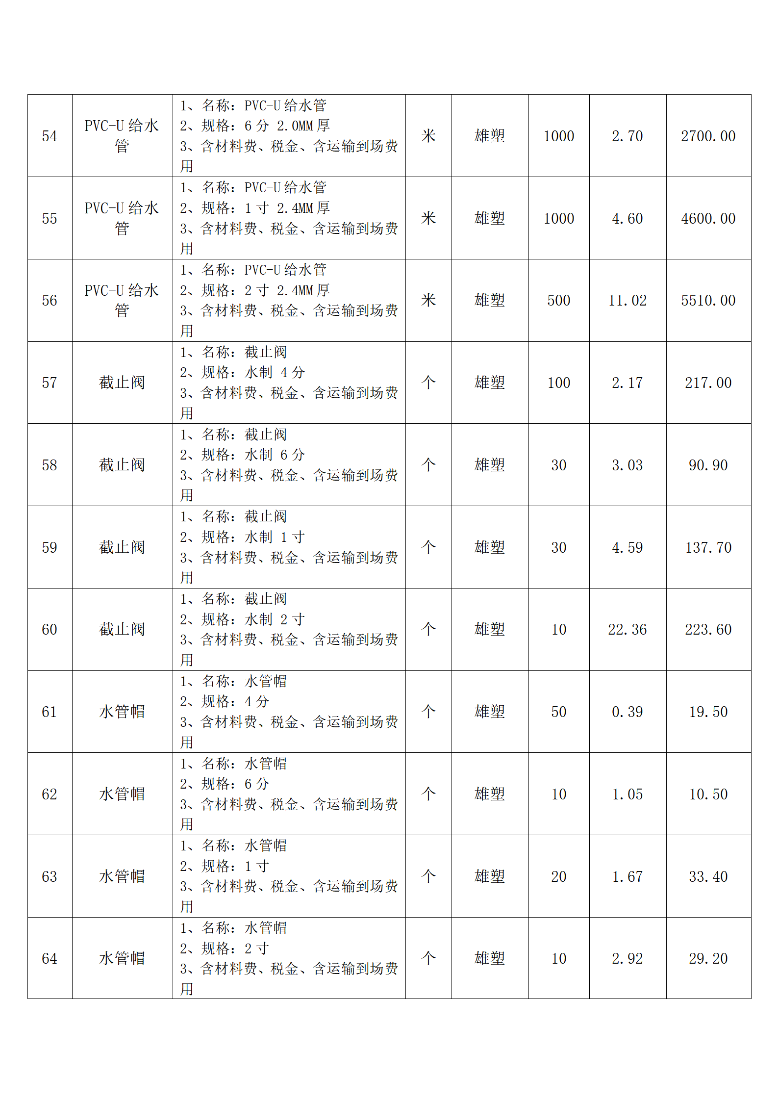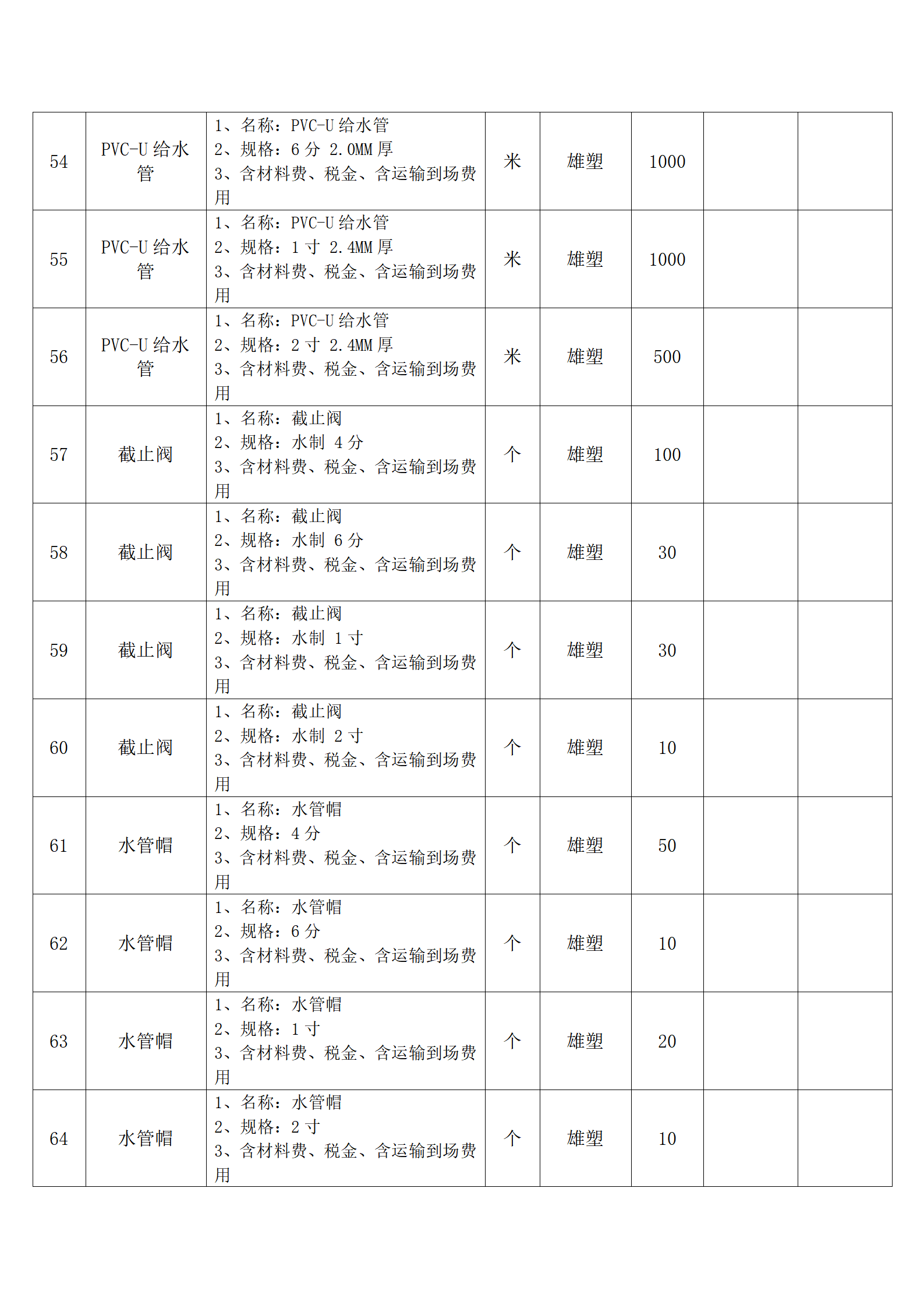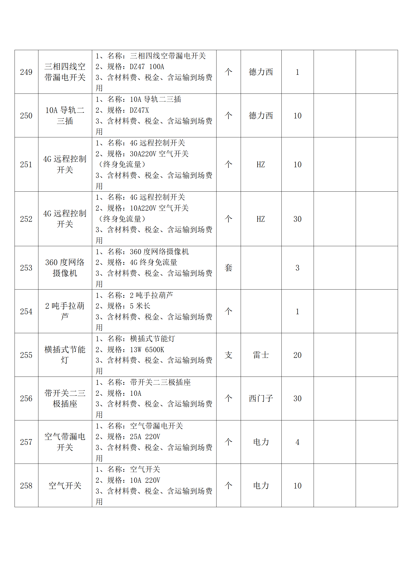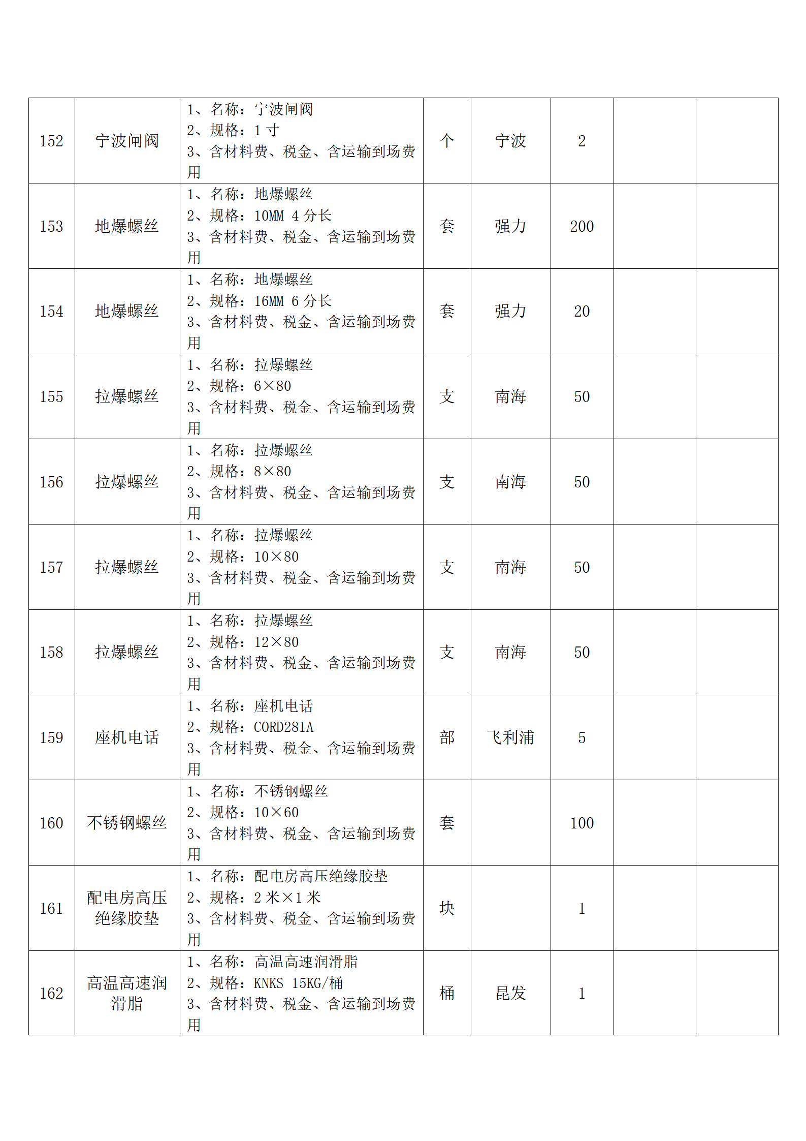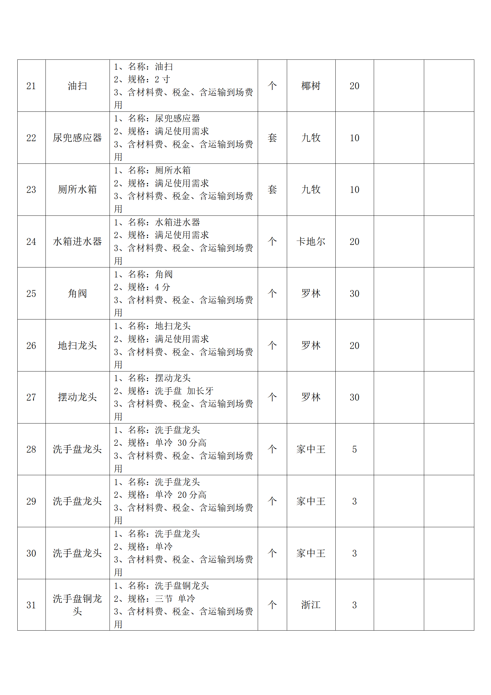 全费用清单与报价表中每一项都已指定品牌和采购量,报价人均不得更改。