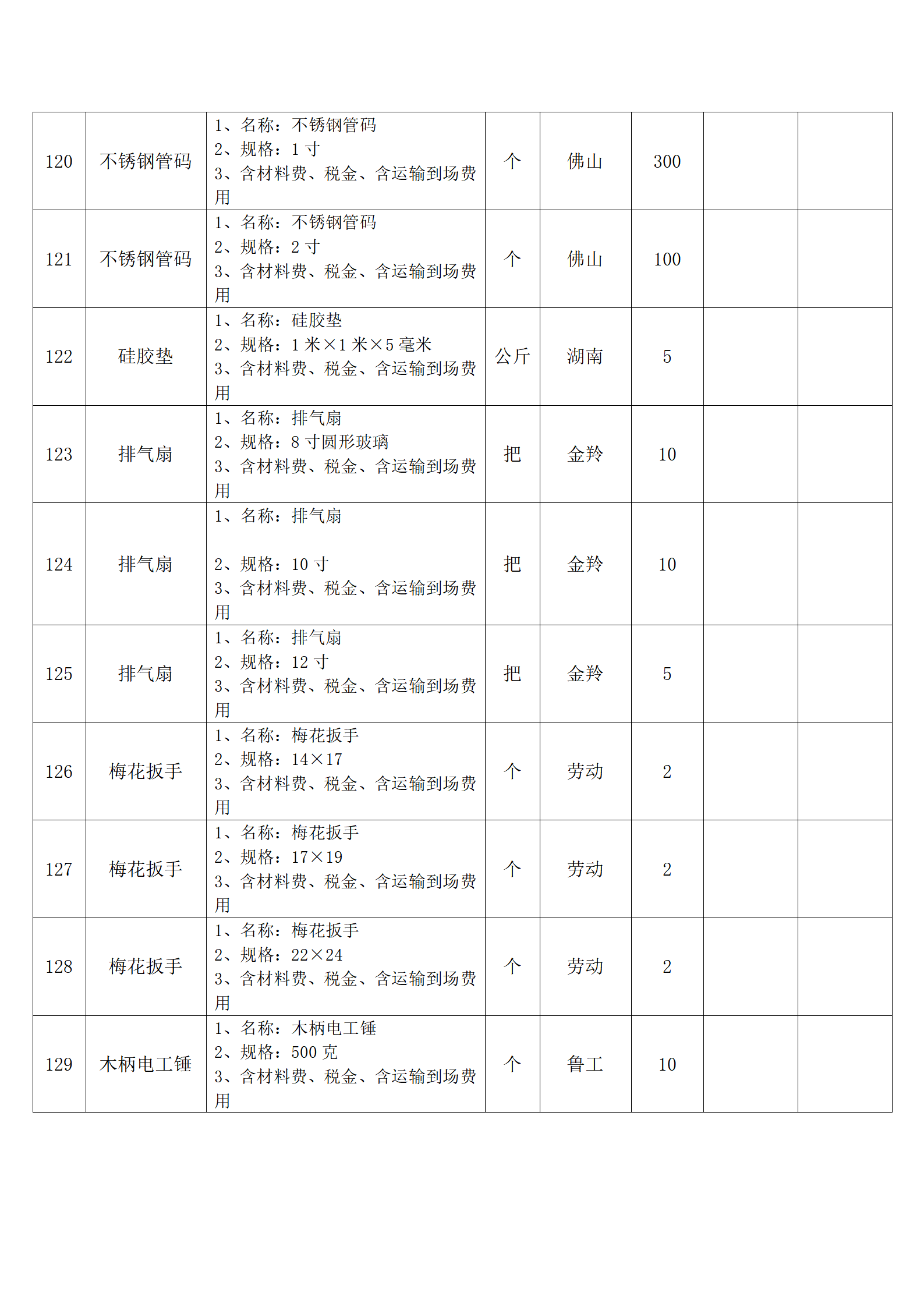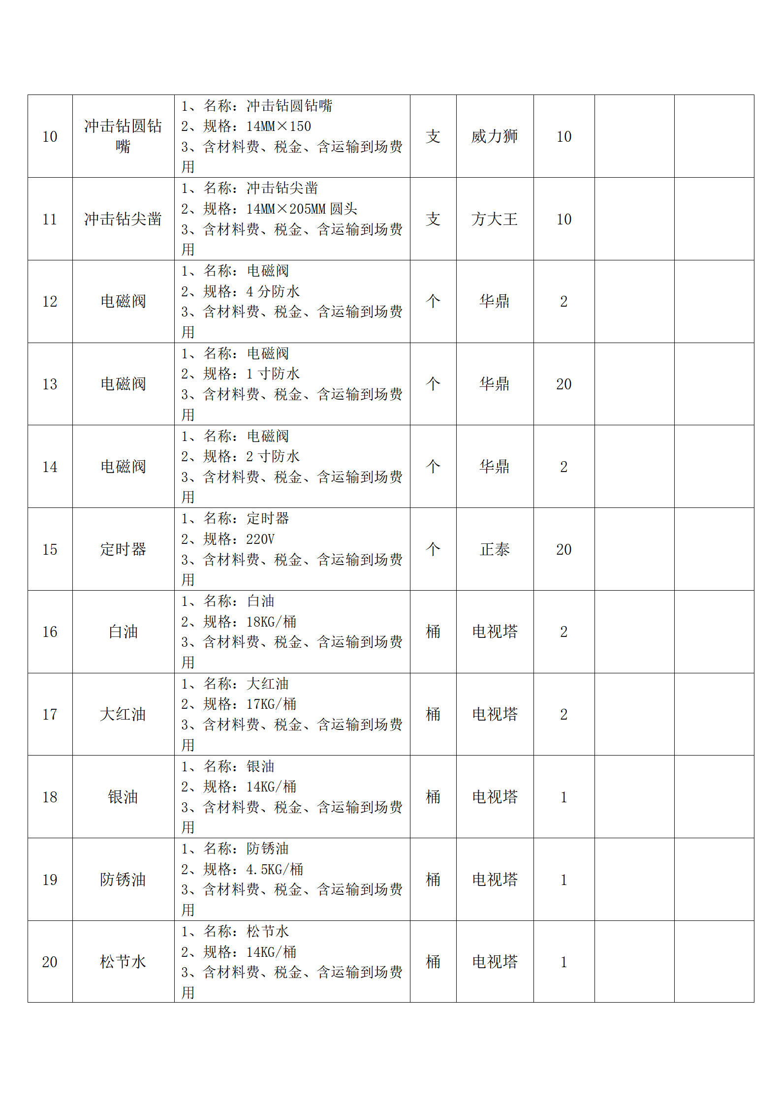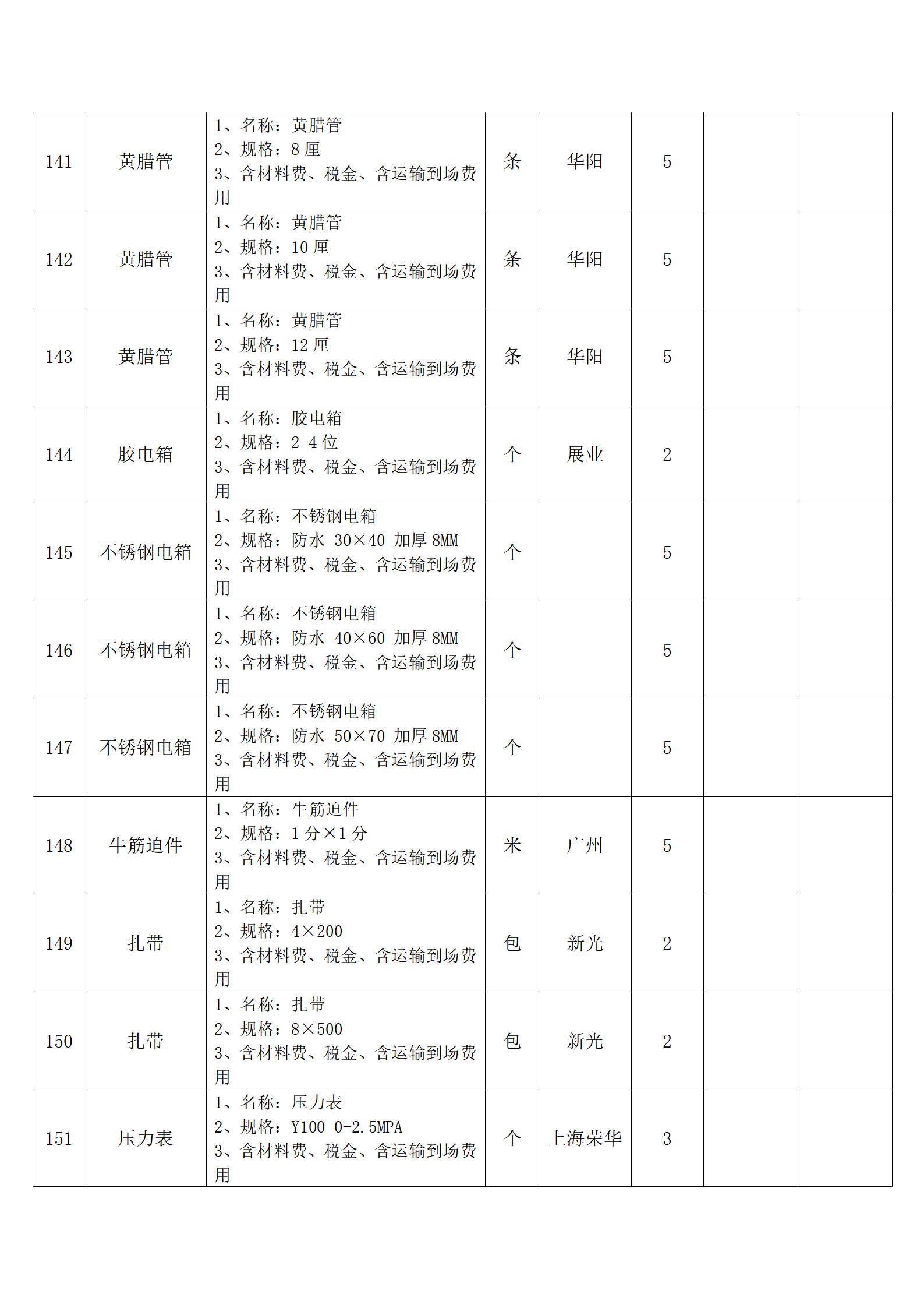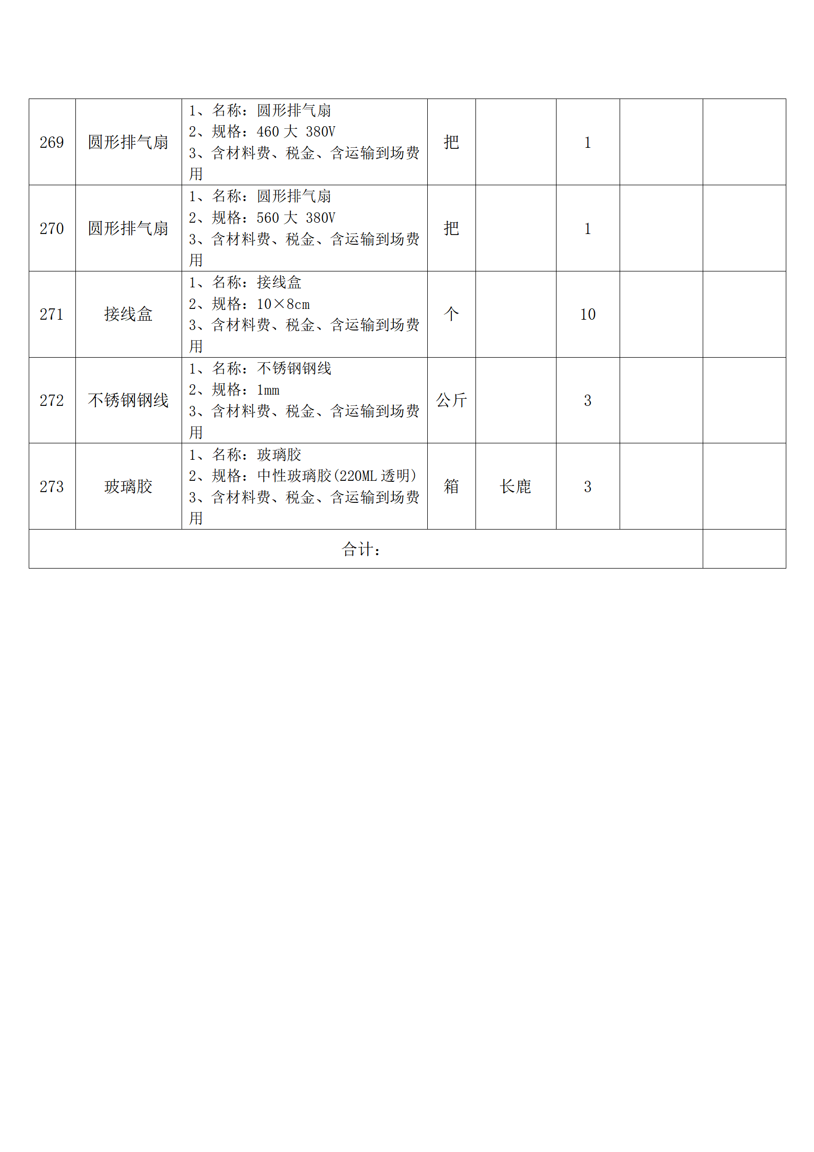 (四)报价人应按采购方提供的全费用清单与报价表填报含税单价、含税合价和合计。