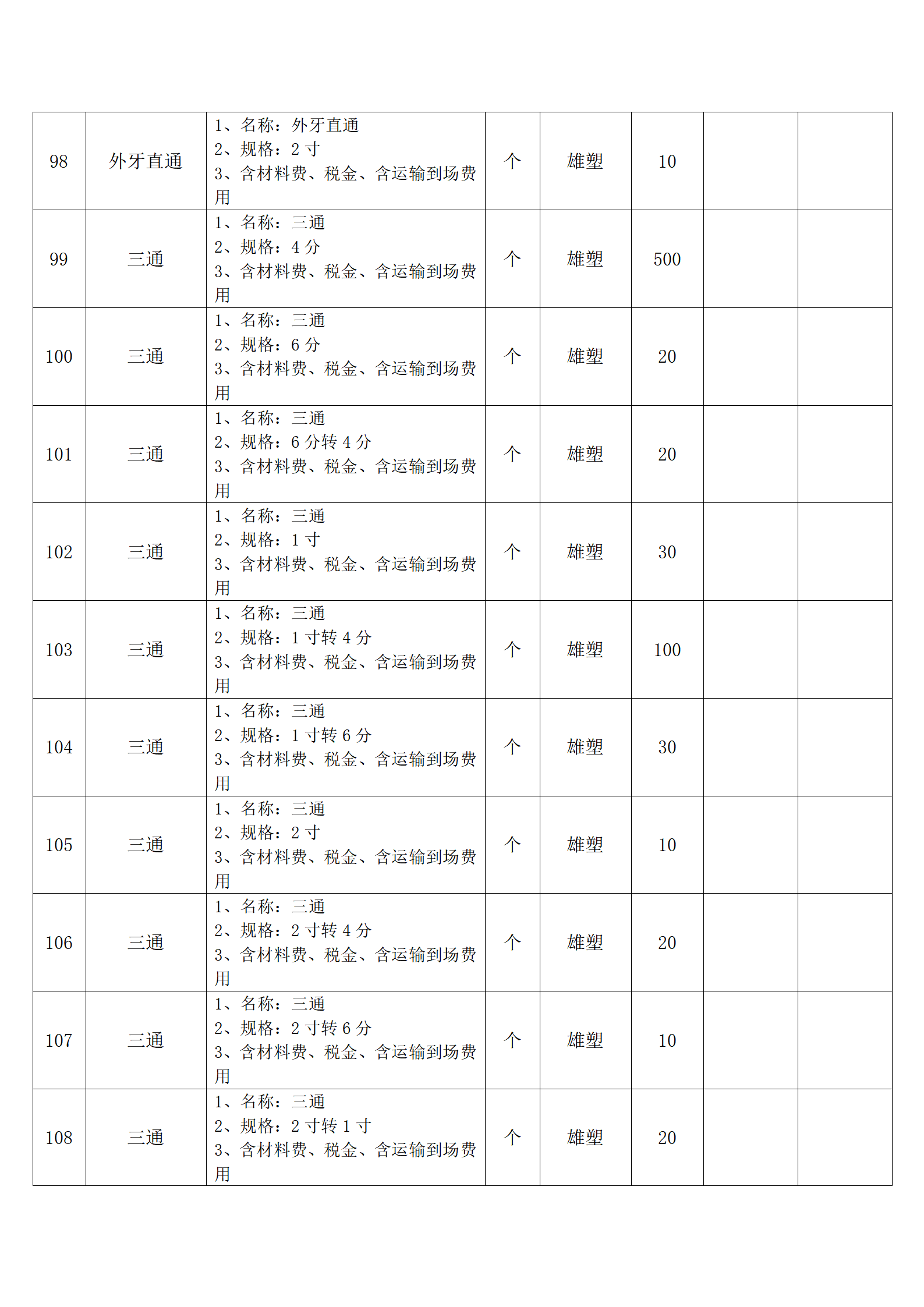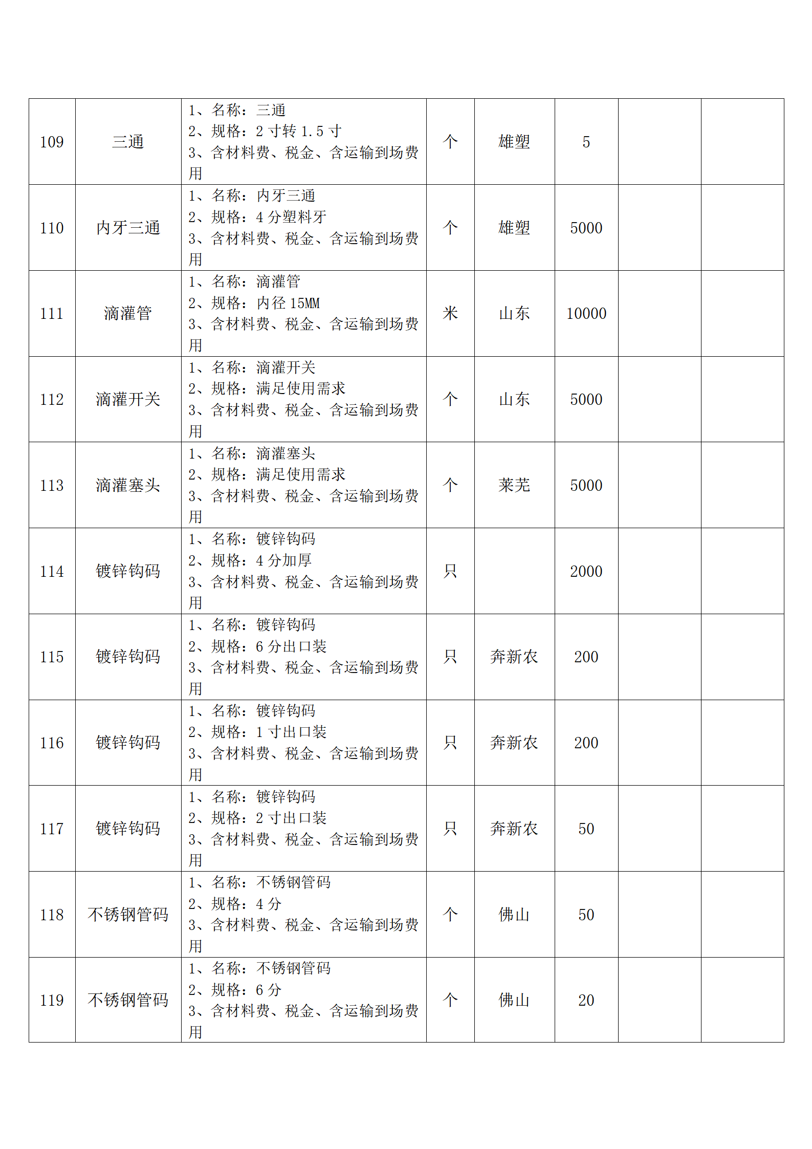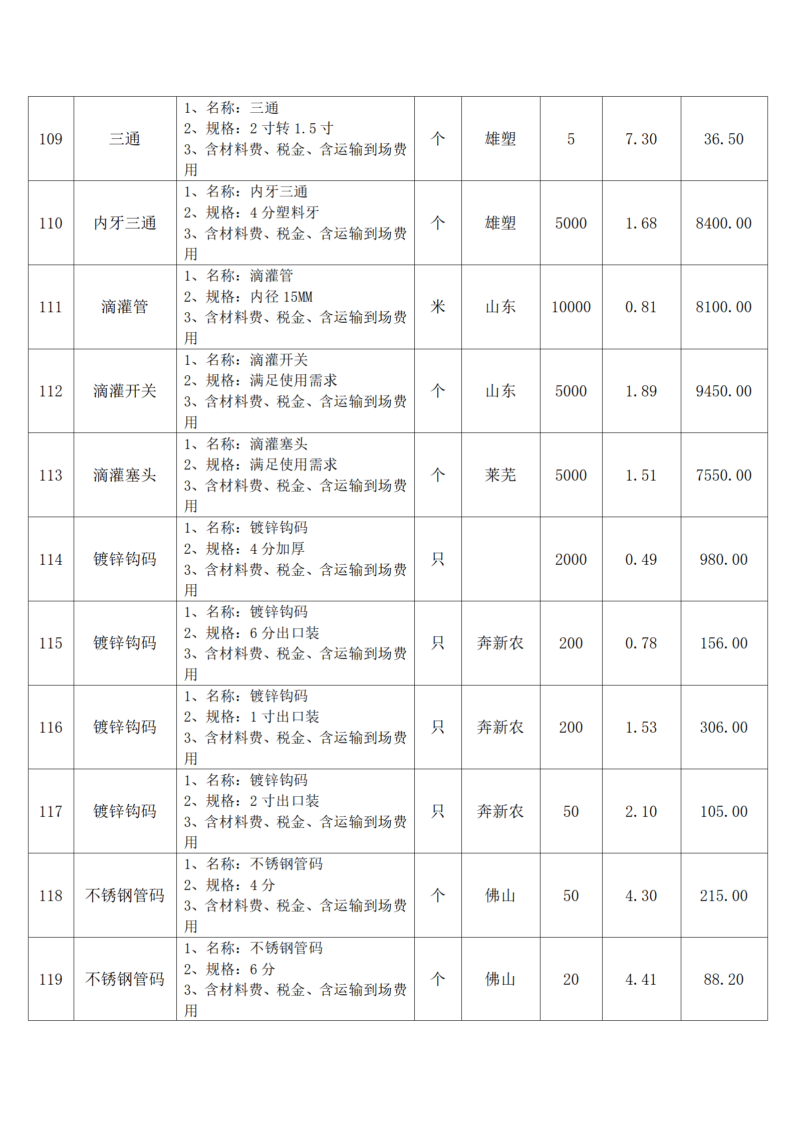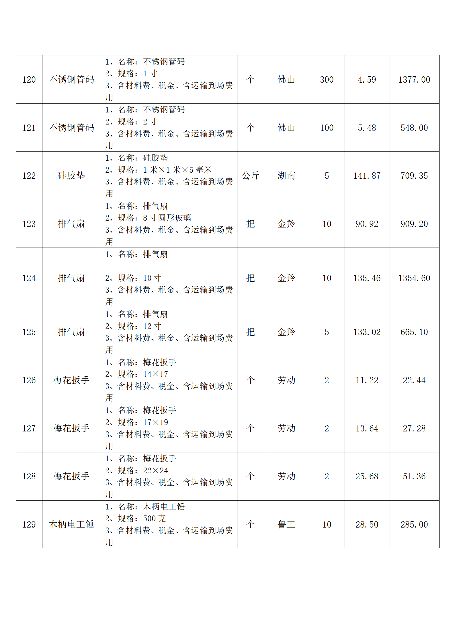 (四)报价人应按采购方提供的全费用清单与报价表填报含税单价、含税合价和合计。