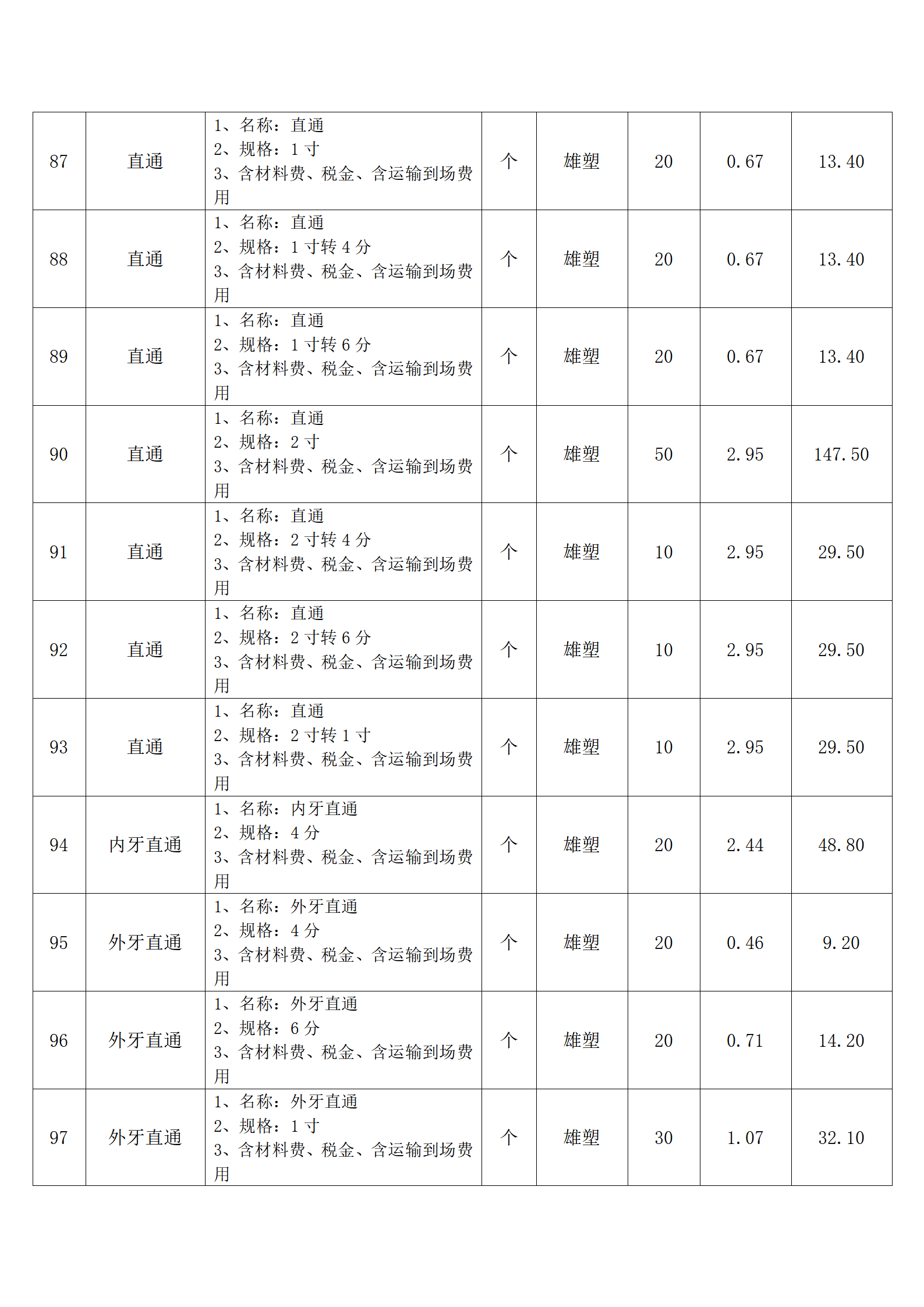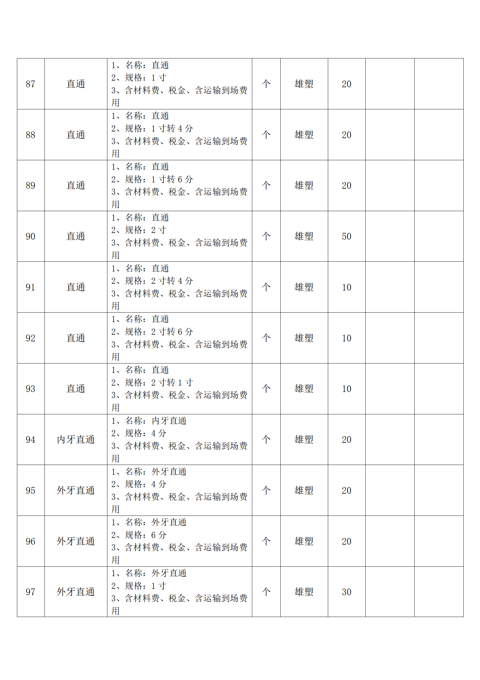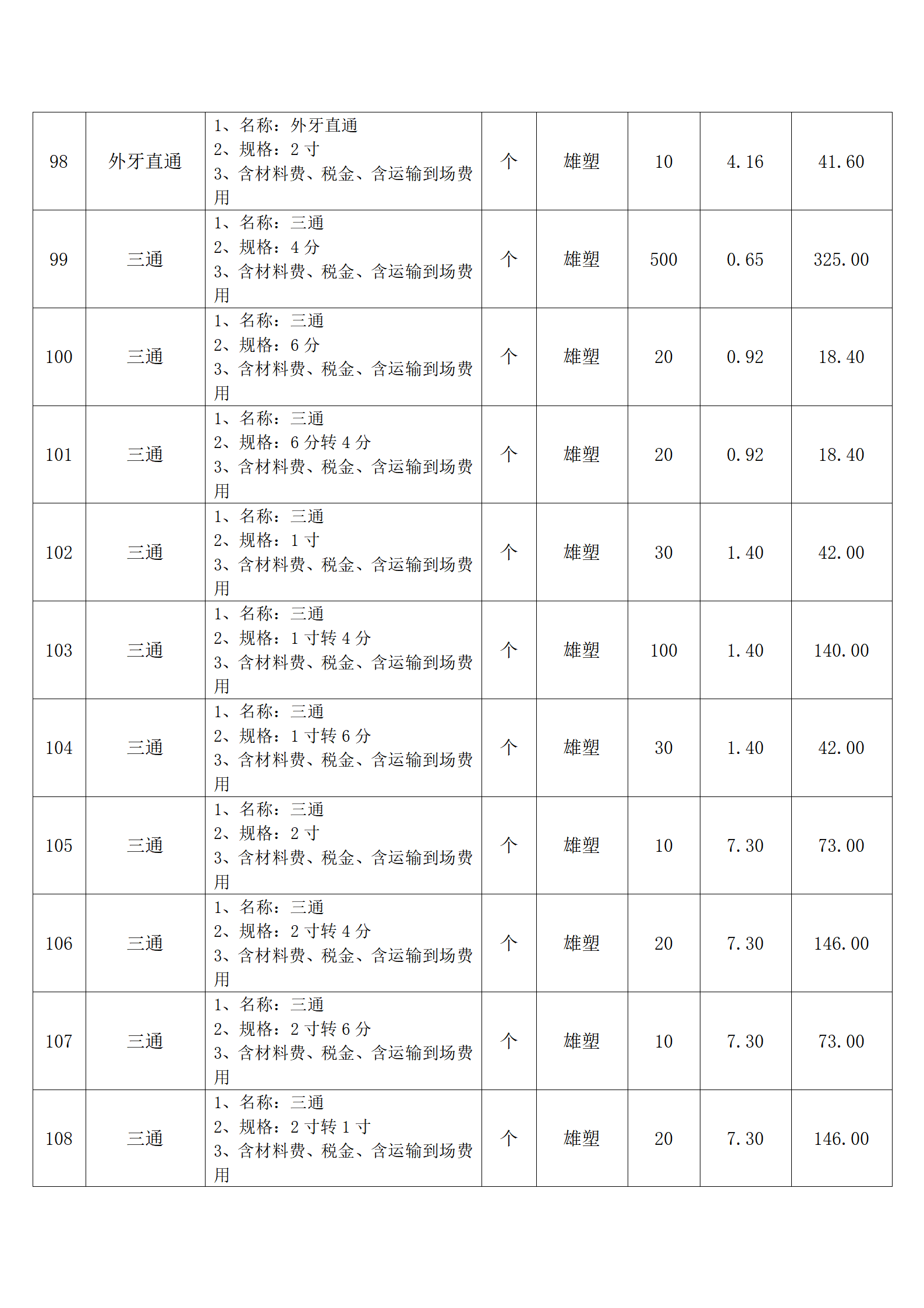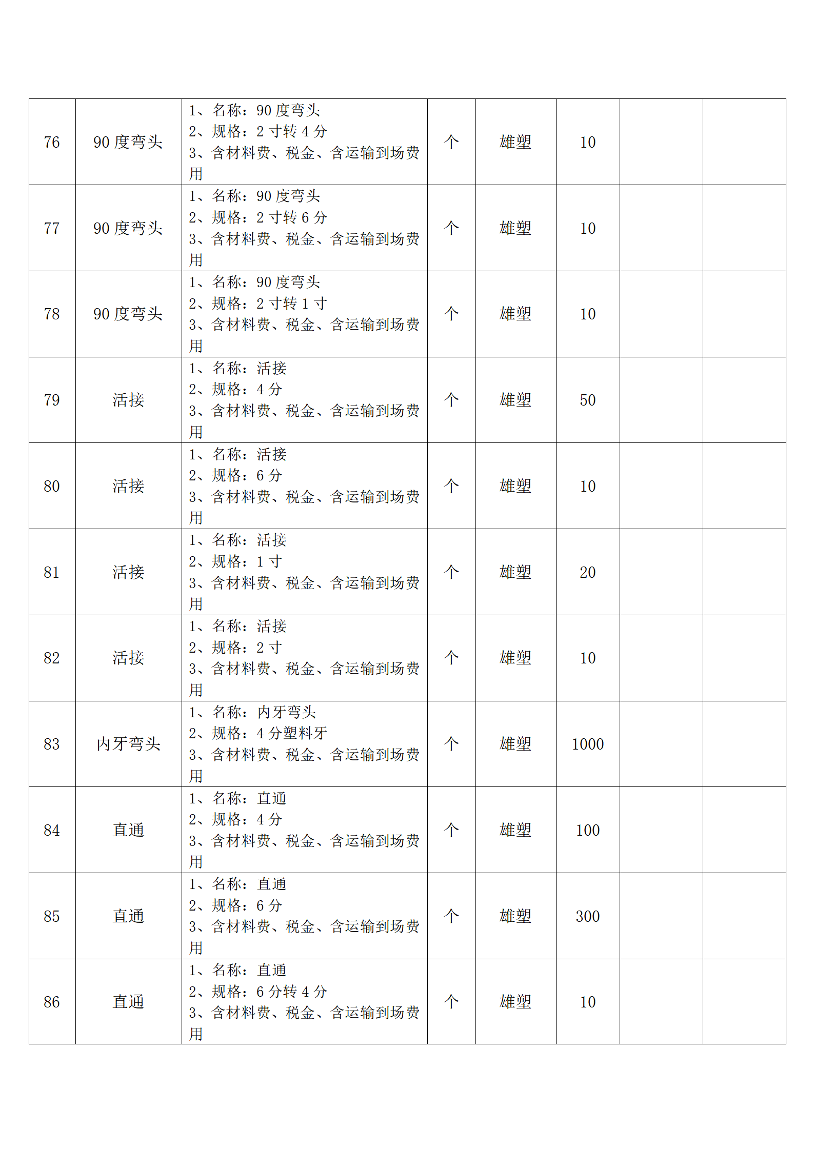 (四)报价人应按采购方提供的全费用清单与报价表填报含税单价、含税合价和合计。